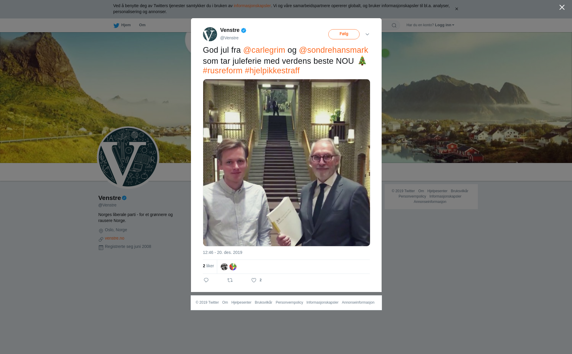 God jul fra @carlegrim og @sondrehansmark som tar juleferie med verdens beste NOU 🎄 #rusreform #hjelpikkestraff https://t.co/HzKvGFjaPR