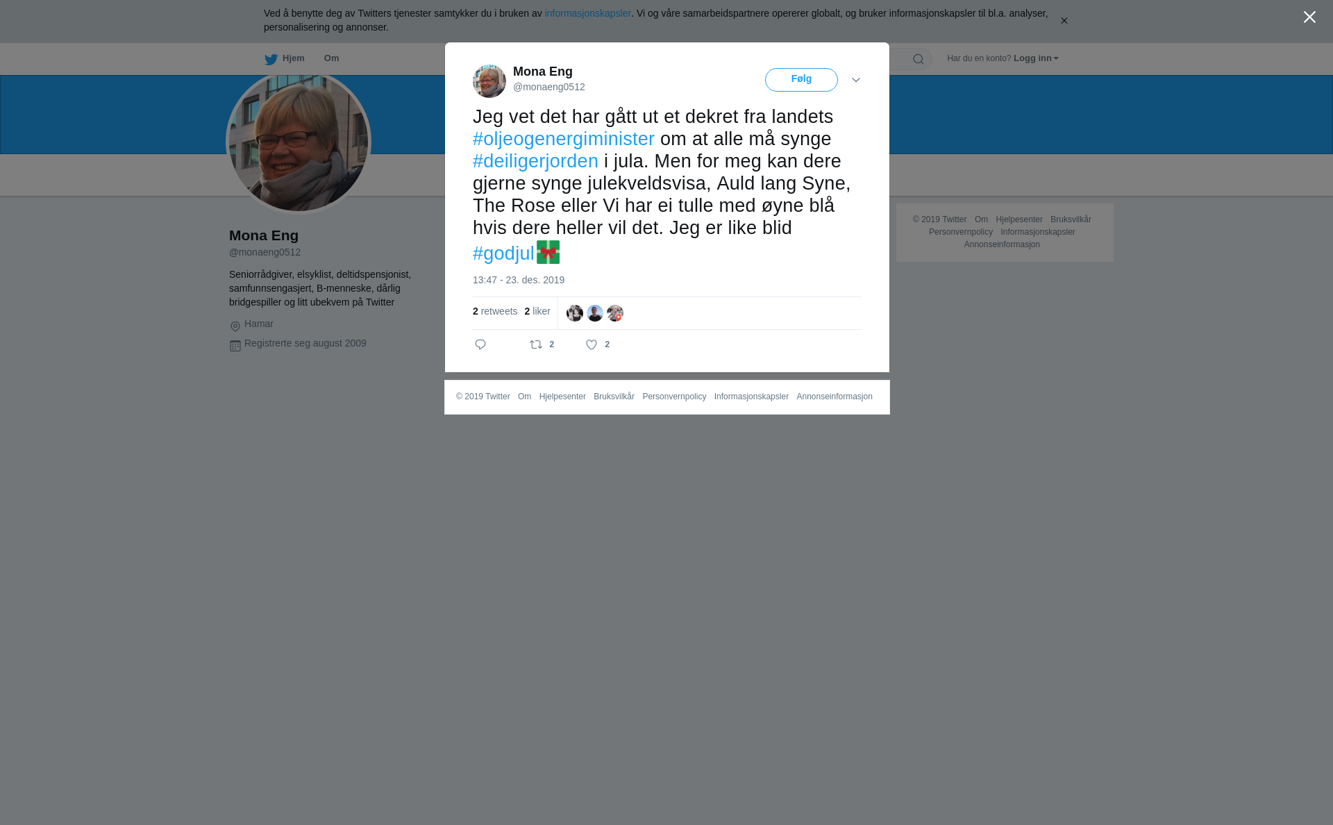 RT @monaeng0512: Jeg vet det har gått ut et dekret fra landets #oljeogenergiminister om at alle må synge #deiligerjorden i jula. Men for meg kan dere gjerne synge julekveldsvisa, Auld lang Syne, The Rose eller Vi har ei tulle med øyne blå hvis dere heller vil det. Jeg er like blid #godjul