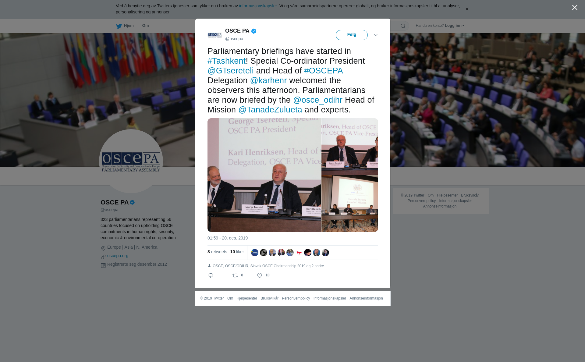 RT @oscepa: Parliamentary briefings have started in #Tashkent! Special Co-ordinator President @GTsereteli and Head of #OSCEPA Delegation @karhenr welcomed the observers this afternoon. Parliamentarians are now briefed by the @osce_odihr Head of Mission @TanadeZulueta and experts. https://t.co/wsys5W3Ucw