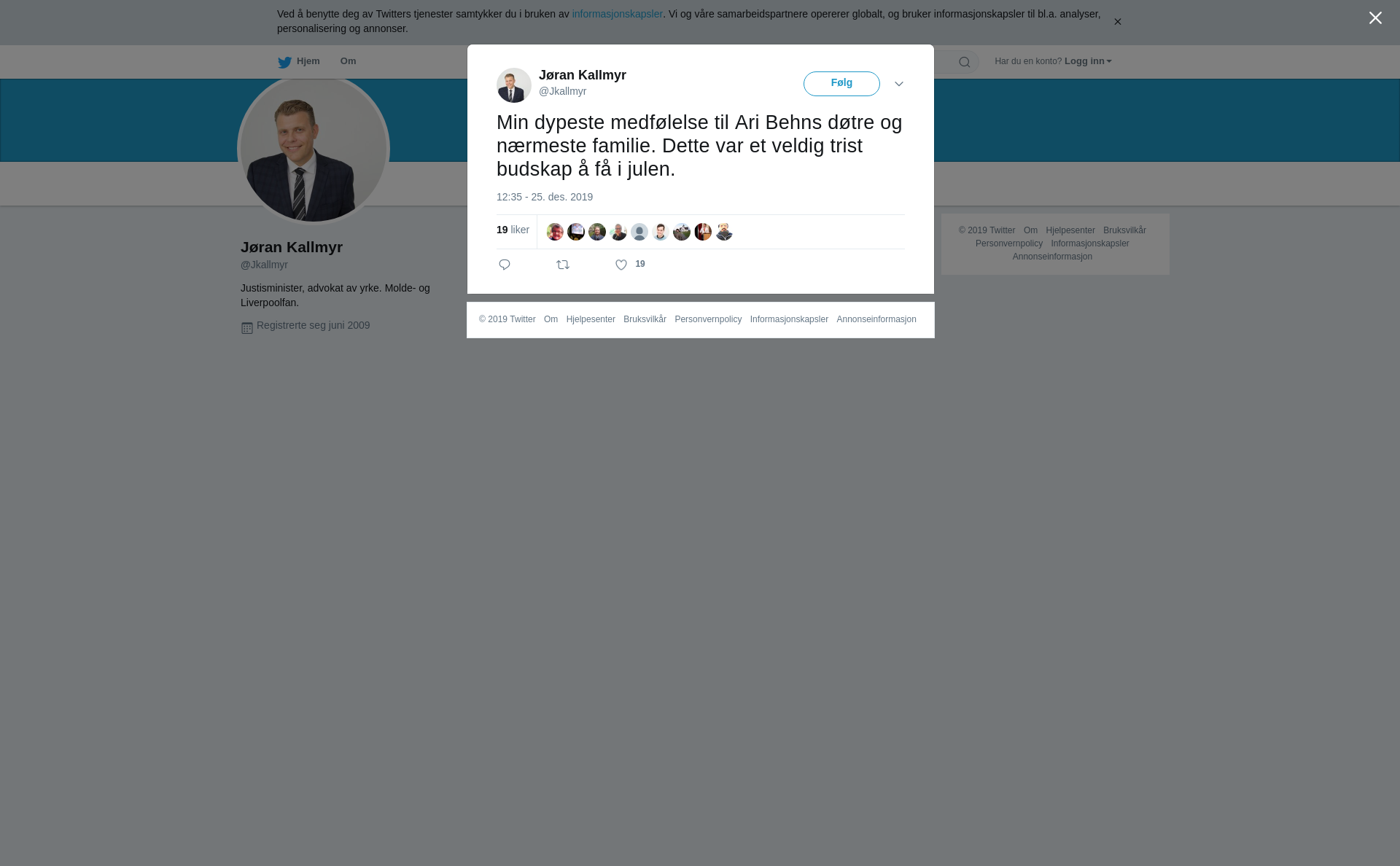 Min dypeste medfølelse til Ari Behns døtre og nærmeste familie. Dette var et veldig trist budskap å få i julen.
