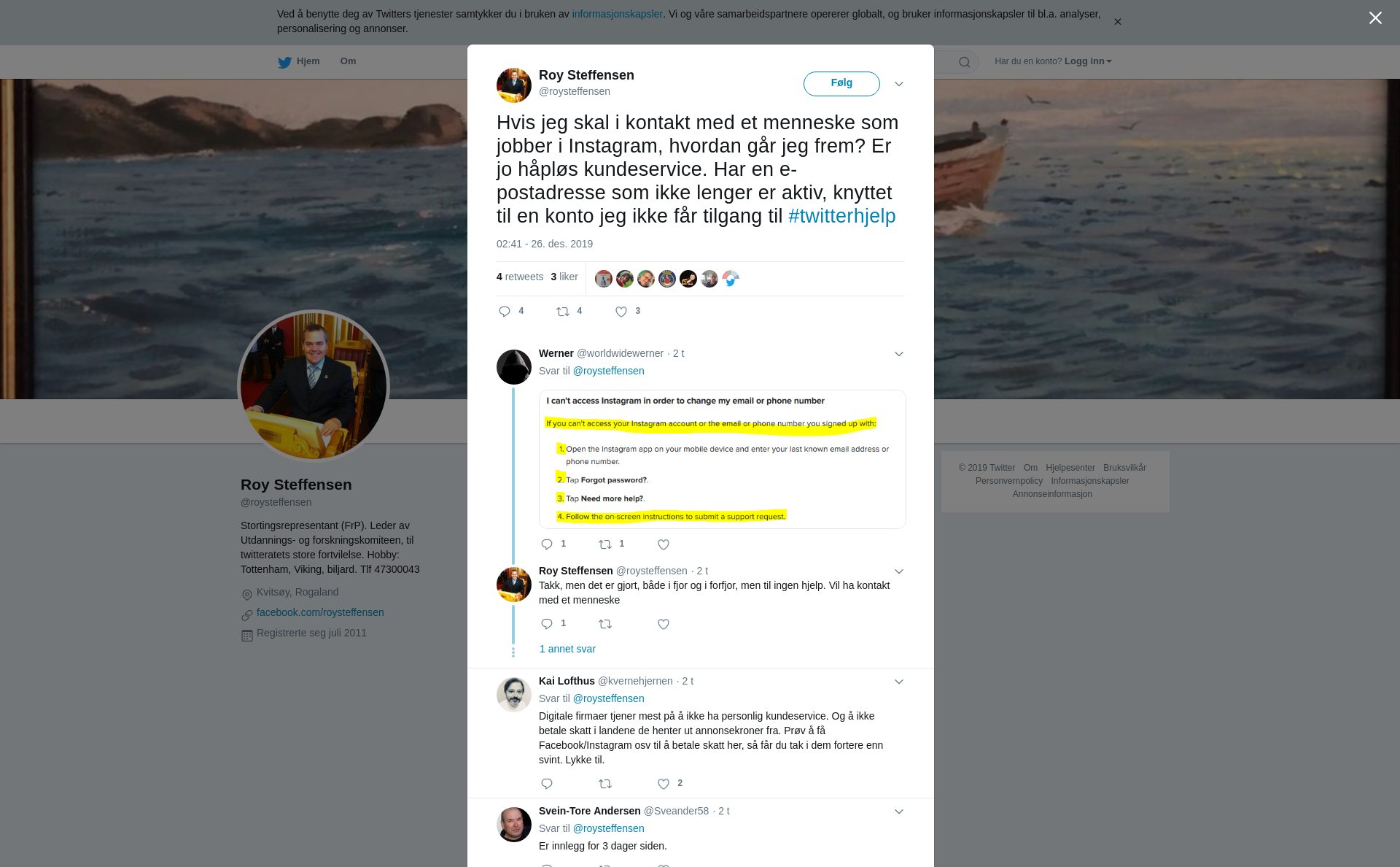 Hvis jeg skal i kontakt med et menneske som jobber i Instagram, hvordan går jeg frem? Er jo håpløs kundeservice. Har en e-postadresse som ikke lenger er aktiv, knyttet til en konto jeg ikke får tilgang til #twitterhjelp