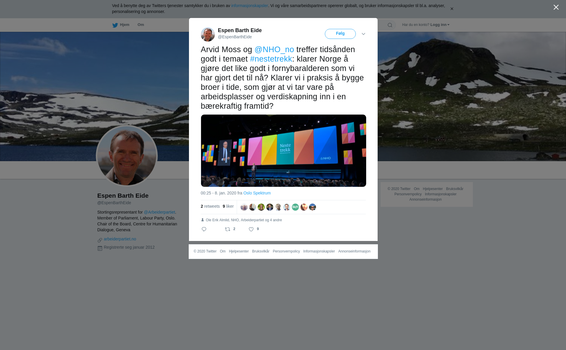 Arvid Moss og @NHO_no treffer tidsånden godt i temaet #nestetrekk: klarer Norge å gjøre det like godt i fornybaralderen som vi har gjort det til nå? Klarer vi i praksis å bygge broer i tide, som gjør at vi tar vare på arbeidsplasser og verdiskapning inn i en bærekraftig framtid? https://t.co/WNImHe9fOD