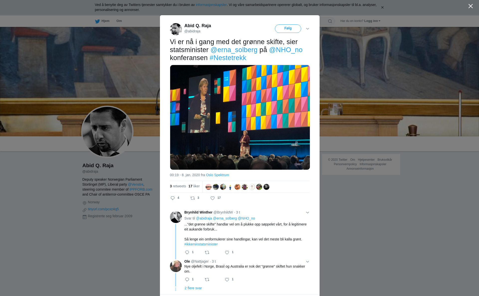 RT @abidraja: Vi er nå i gang med det grønne skifte, sier statsminister @erna_solberg på @NHO_no konferansen #Nestetrekk https://t.co/Fq3hKhCDoh