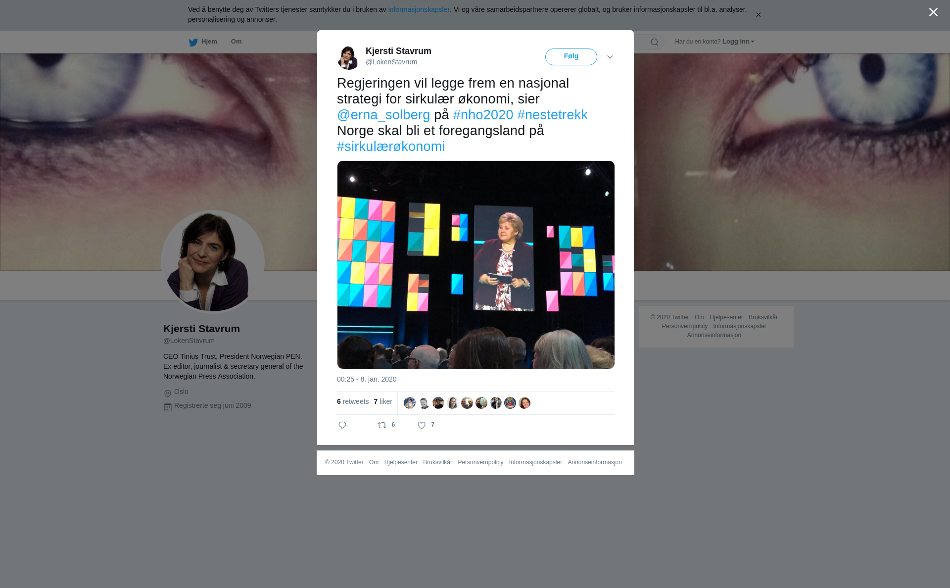 RT @LokenStavrum: Regjeringen vil legge frem en nasjonal strategi for sirkulær økonomi, sier @erna_solberg på #nho2020 #nestetrekk Norge skal bli et foregangsland på #sirkulærøkonomi https://t.co/yKxNylrGQp