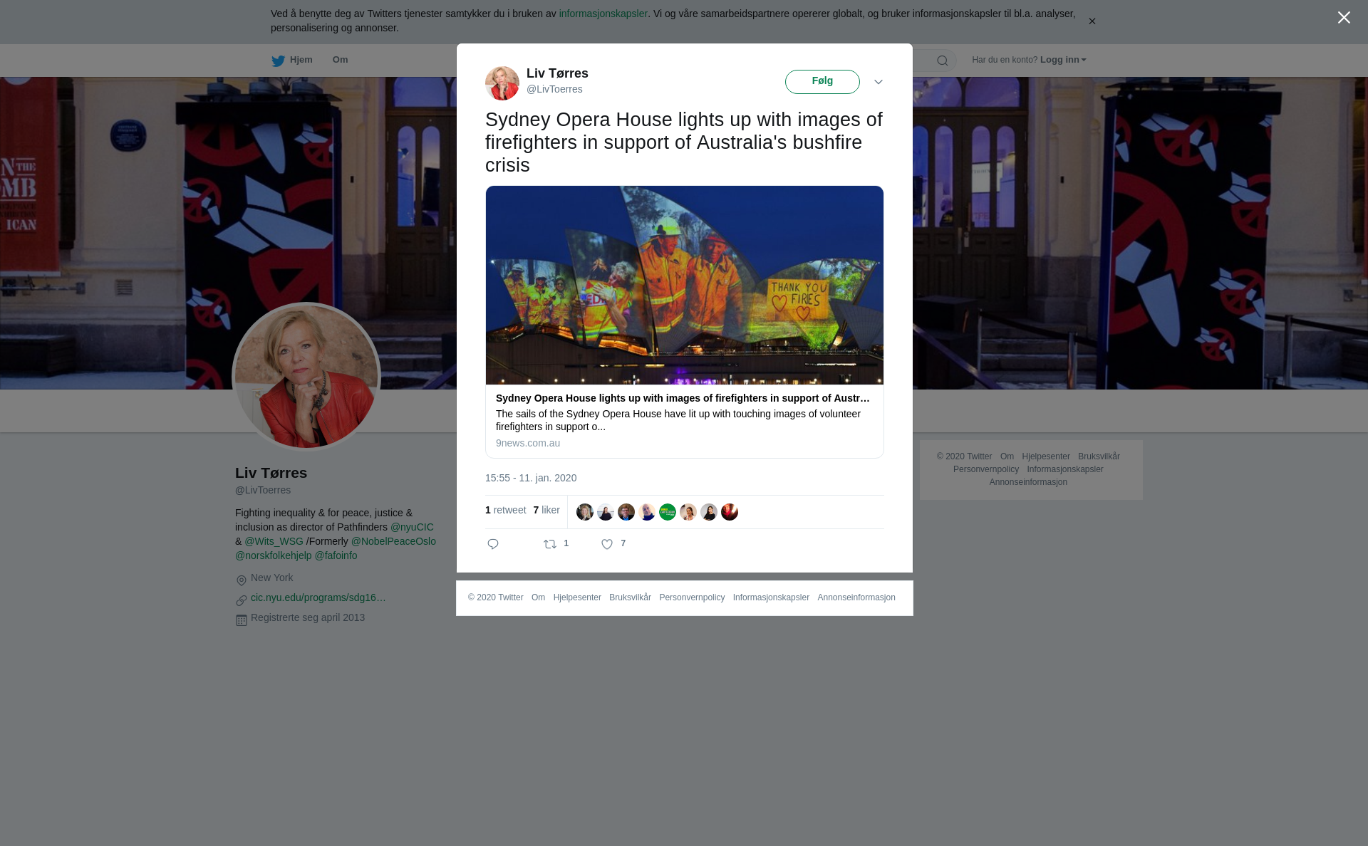 RT @LivToerres: Sydney Opera House lights up with images of firefighters in support of Australia's bushfire crisis https://t.co/2E1Zze4NtP