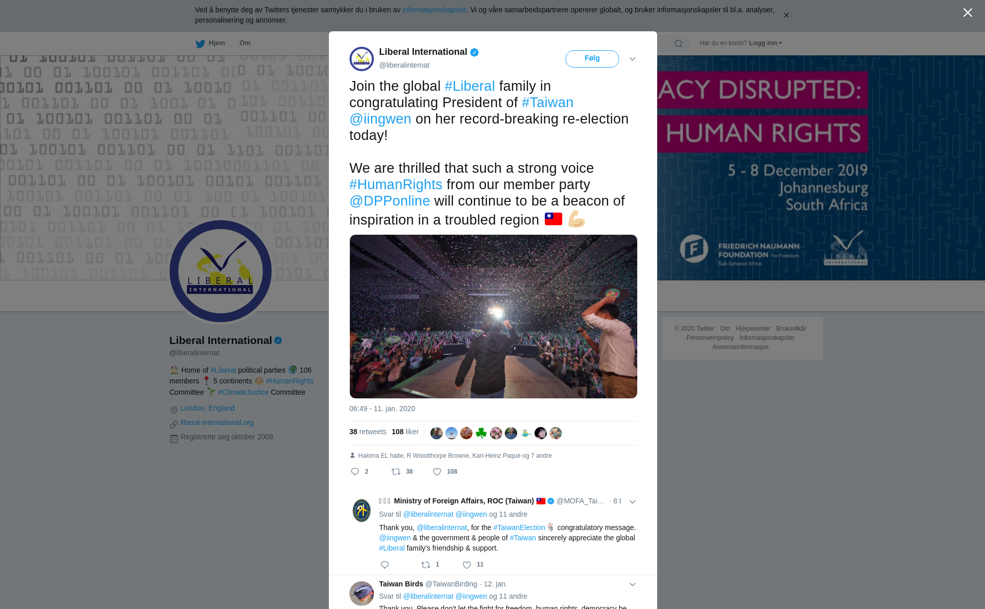 RT @liberalinternat: Join the global #Liberal family in congratulating President of #Taiwan @iingwen on her record-breaking re-election today!