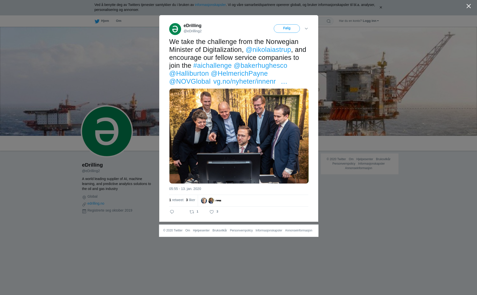 RT @eDrilling2: We take the challenge from the Norwegian Minister of Digitalization, @nikolaiastrup, and encourage our fellow service companies to join the #aichallenge @bakerhughesco @Halliburton @HelmerichPayne @NOVGlobal https://t.co/hPaODiMKLA https://t.co/nPoxCPqFH8