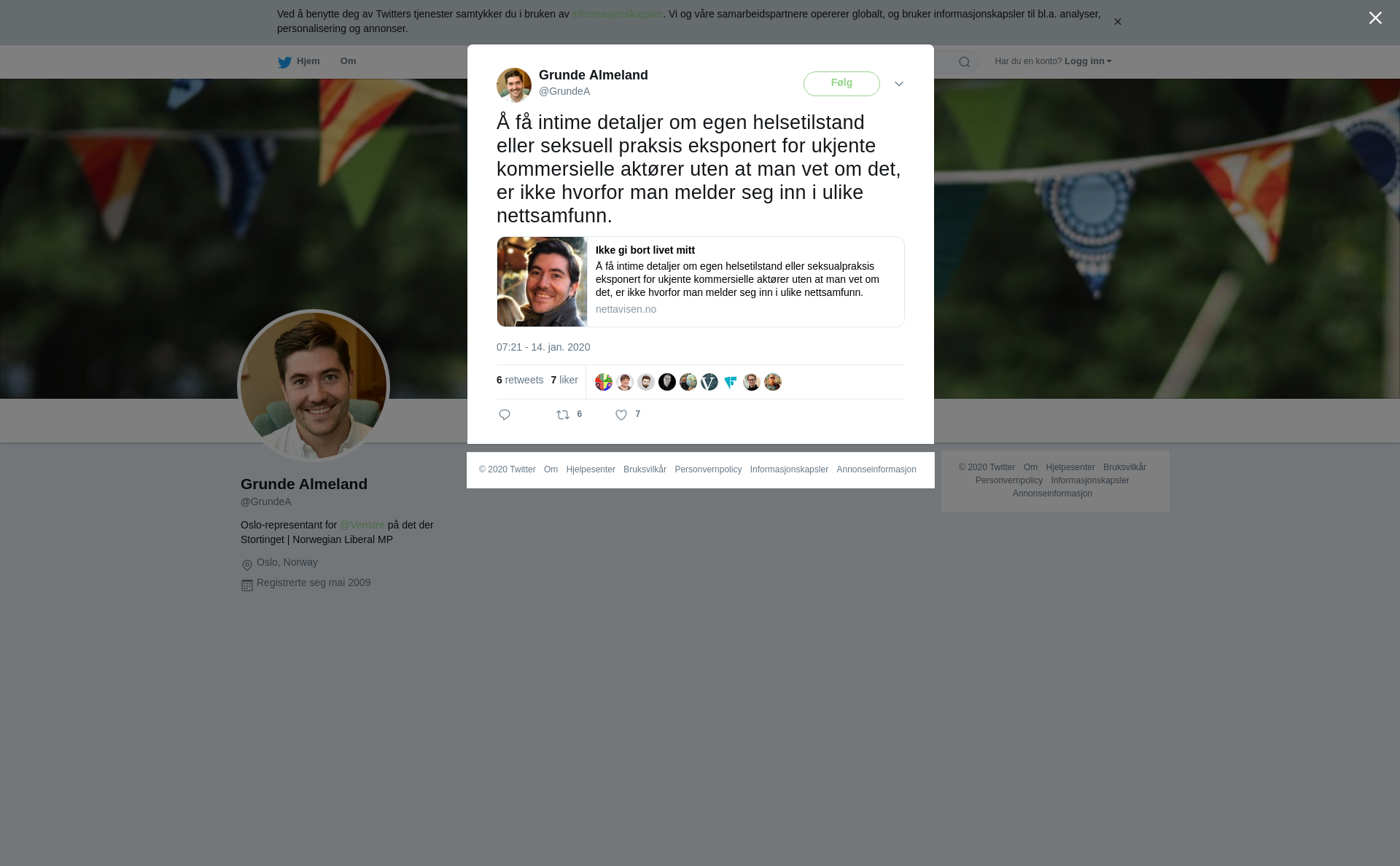 RT @GrundeA: Å få intime detaljer om egen helsetilstand eller seksuell praksis eksponert for ukjente kommersielle aktører uten at man vet om det, er ikke hvorfor man melder seg inn i ulike nettsamfunn. https://t.co/bCwUBoJhHh