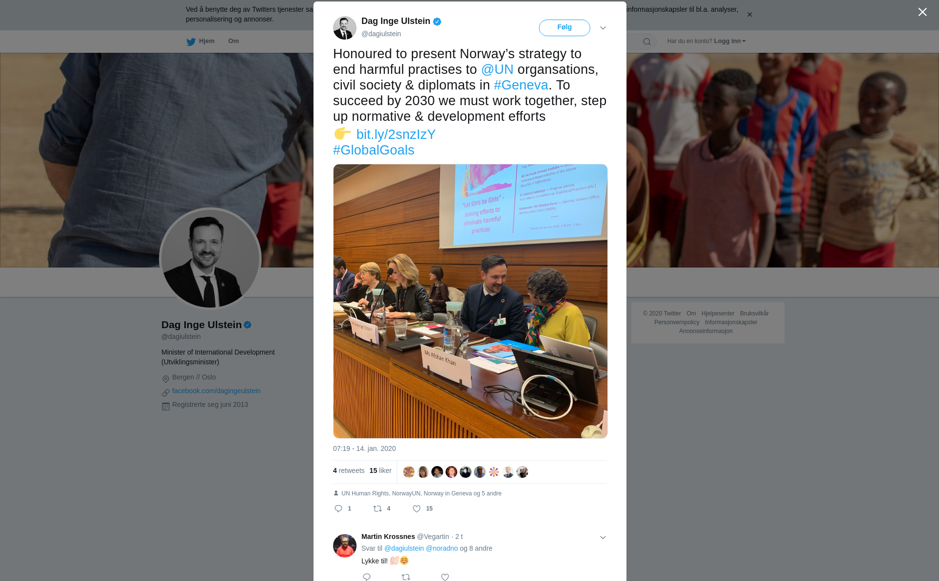 Honoured to present Norway’s strategy to end harmful practises to @UN organsations, civil society & diplomats in #Geneva. To succeed by 2030 we must work together, step up normative & development efforts