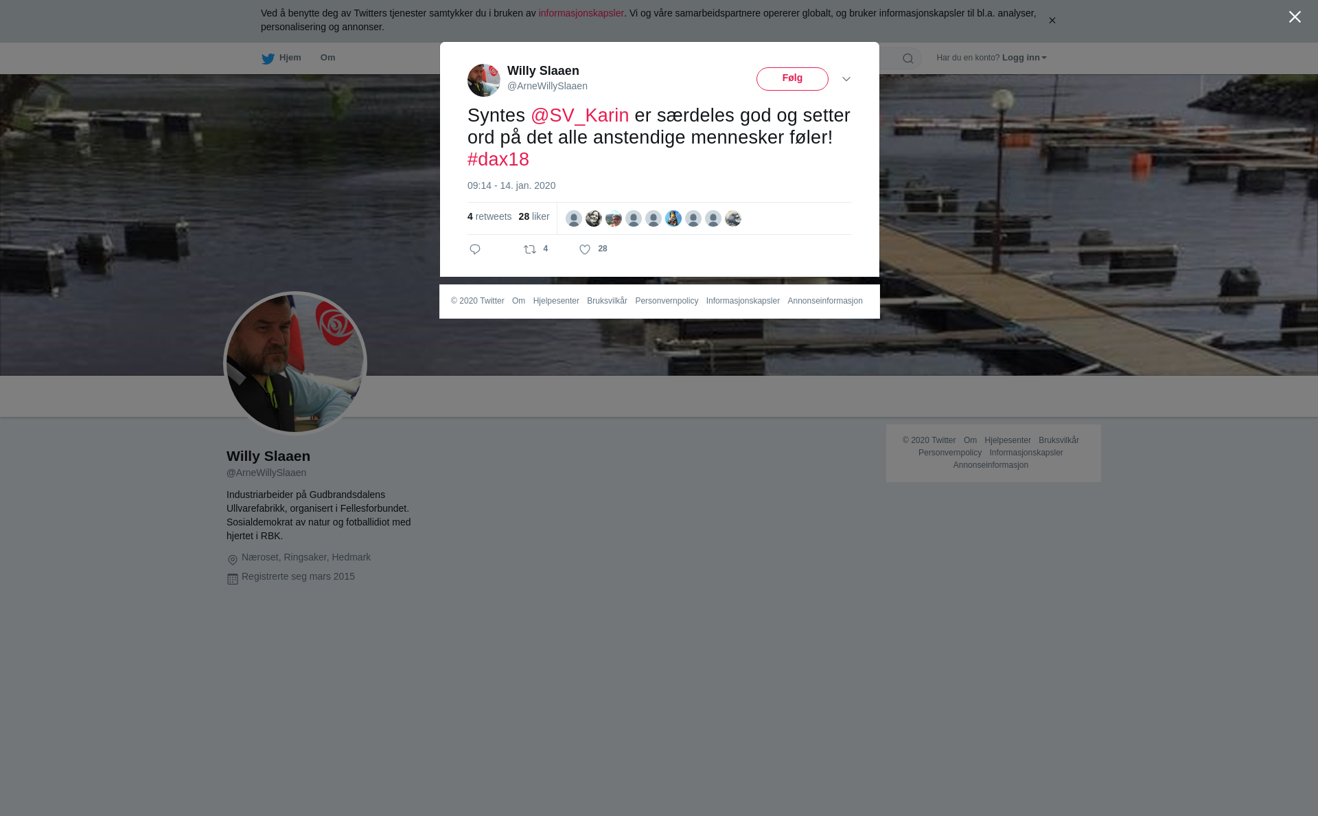 RT @ArneWillySlaaen: Syntes @SV_Karin er særdeles god og setter ord på det alle anstendige mennesker føler! #dax18