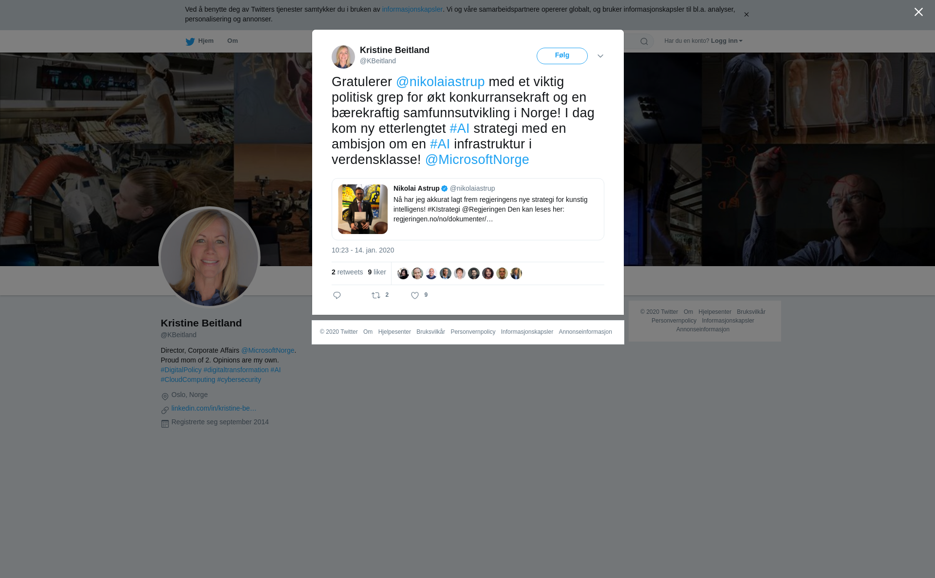 RT @KBeitland: Gratulerer @nikolaiastrup med et viktig politisk grep for økt konkurransekraft og en bærekraftig samfunnsutvikling i Norge! I dag kom ny etterlengtet #AI strategi med en ambisjon om en #AI infrastruktur i verdensklasse! @MicrosoftNorge