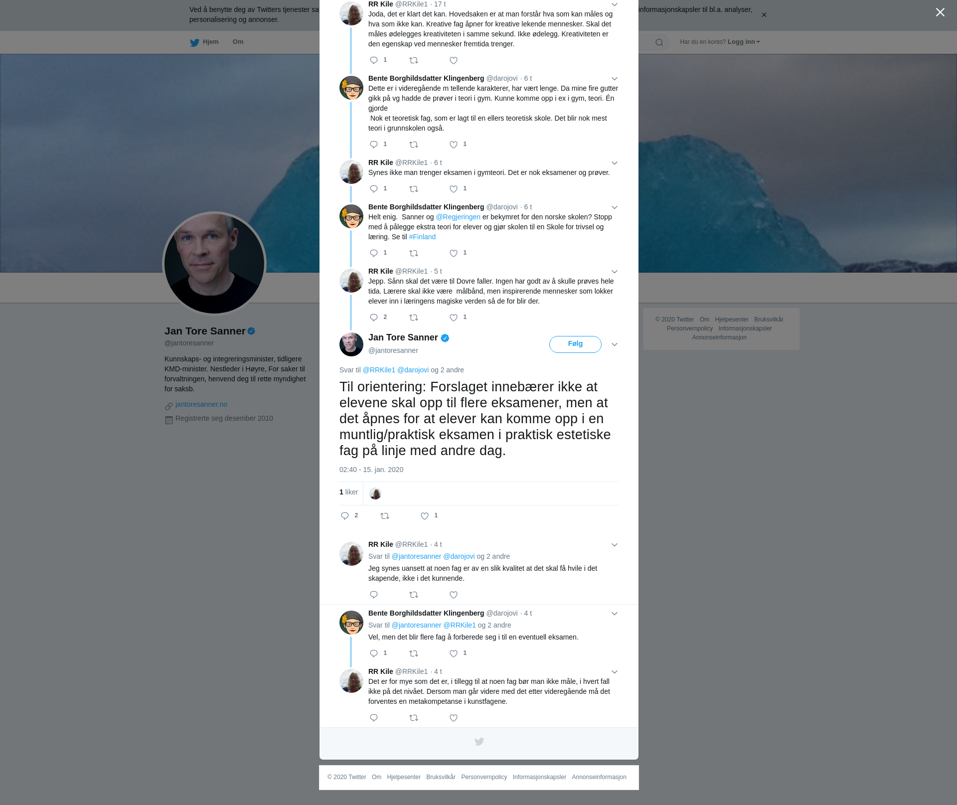 @RRKile1 @darojovi @lefselpk @Regjeringen Til orientering: Forslaget innebærer ikke at elevene skal opp til flere eksamener, men at det åpnes for at elever kan komme opp i en muntlig/praktisk eksamen i praktisk estetiske fag på linje med andre dag.