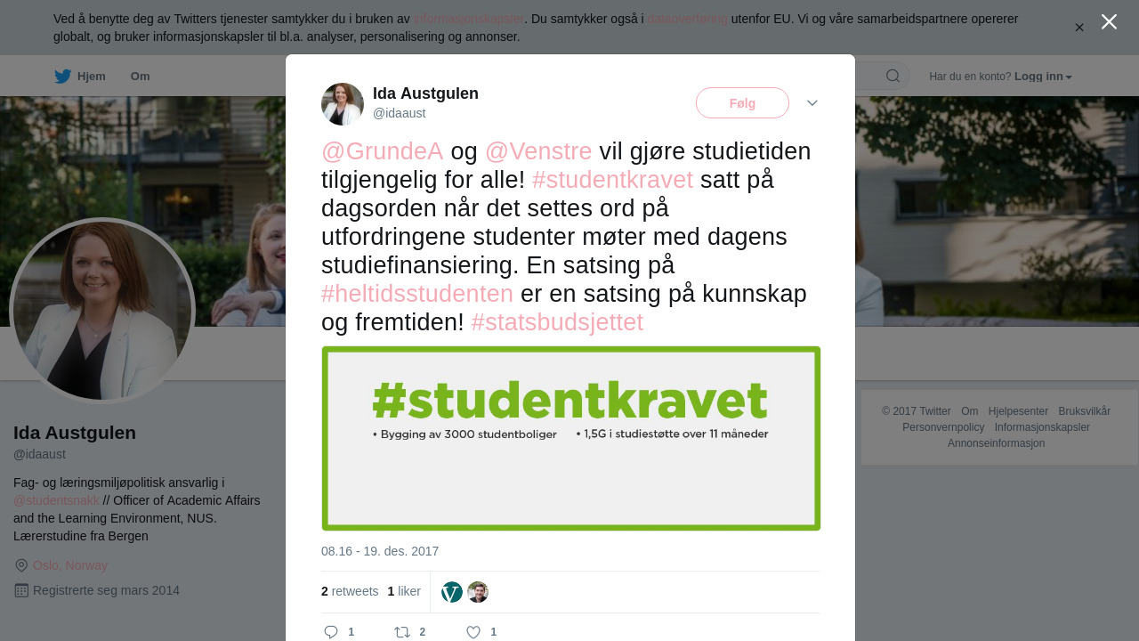 RT @idaaust: @GrundeA og @Venstre vil gjøre studietiden tilgjengelig for alle! #studentkravet satt på dagsorden når det settes o… https://t.co/4aTpwcfBWd