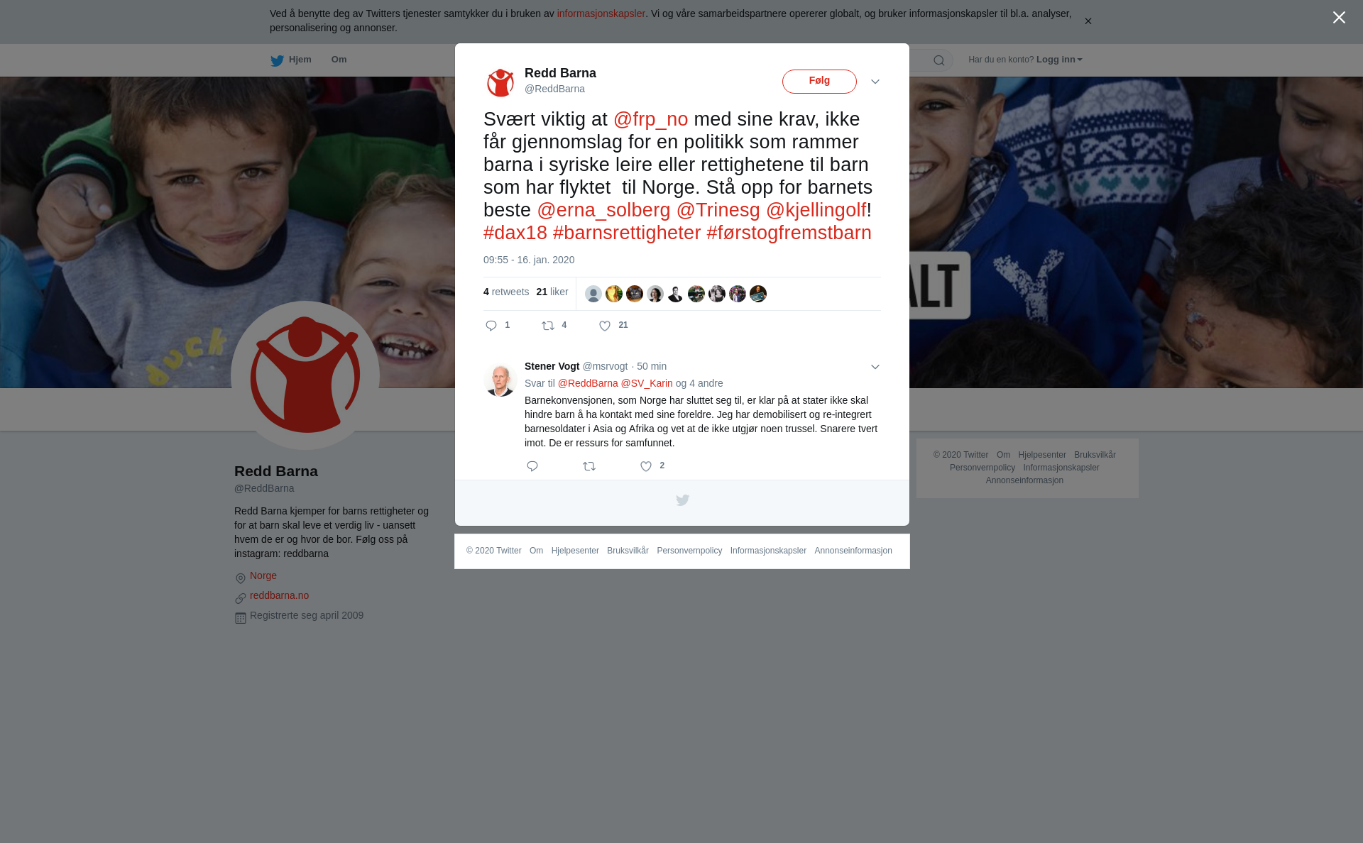 RT @ReddBarna: Svært viktig at @frp_no med sine krav, ikke får gjennomslag for en politikk som rammer barna i syriske leire eller rettighetene til barn som har flyktet til Norge. Stå opp for barnets beste @erna_solberg @Trinesg @kjellingolf! #dax18 #barnsrettigheter #førstogfremstbarn