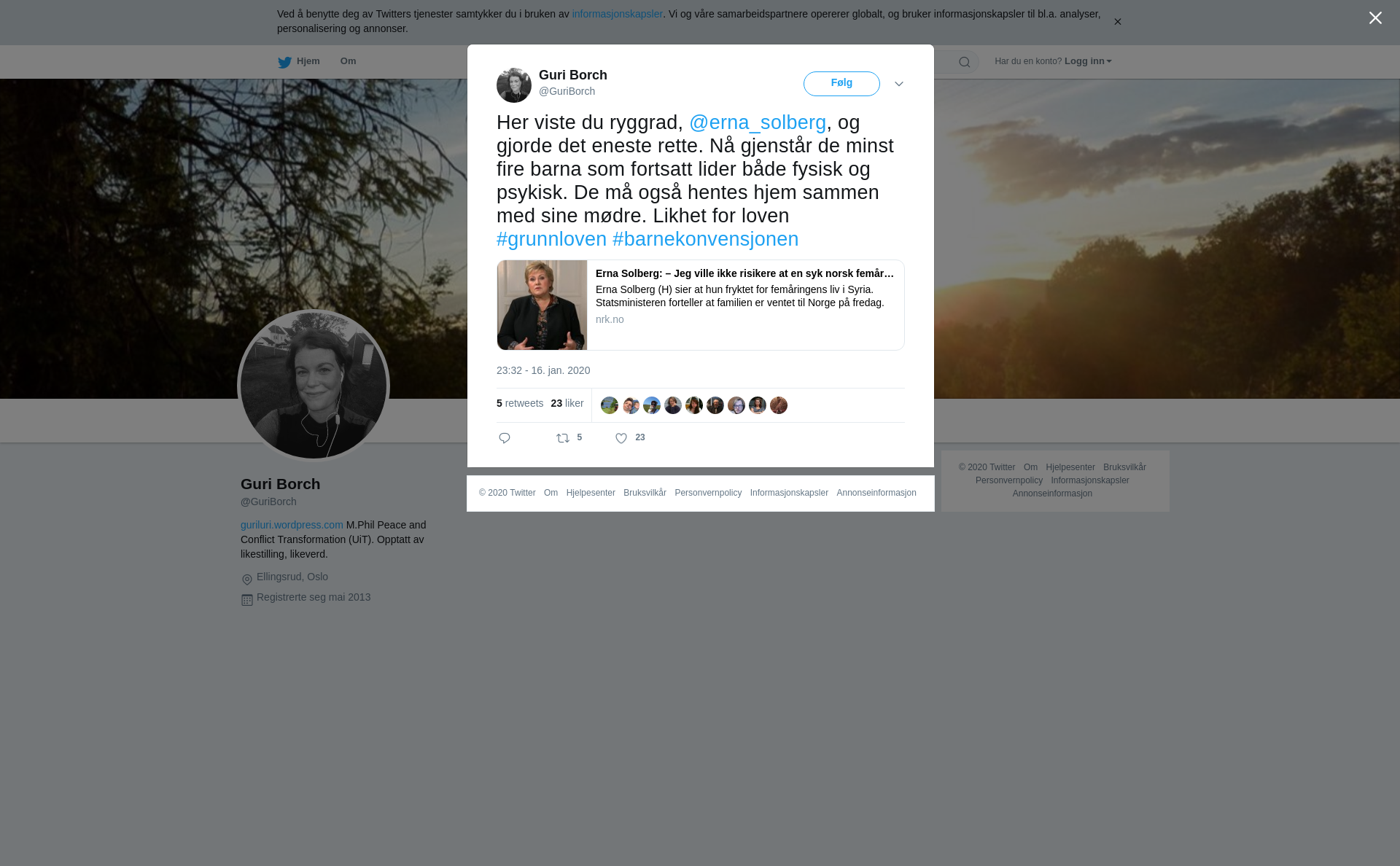 RT @GuriBorch: Her viste du ryggrad, @erna_solberg, og gjorde det eneste rette. Nå gjenstår de minst fire barna som fortsatt lider både fysisk og psykisk. De må også hentes hjem sammen med sine mødre. Likhet for loven #grunnloven #barnekonvensjonen https://t.co/VXhfTVoYbV
