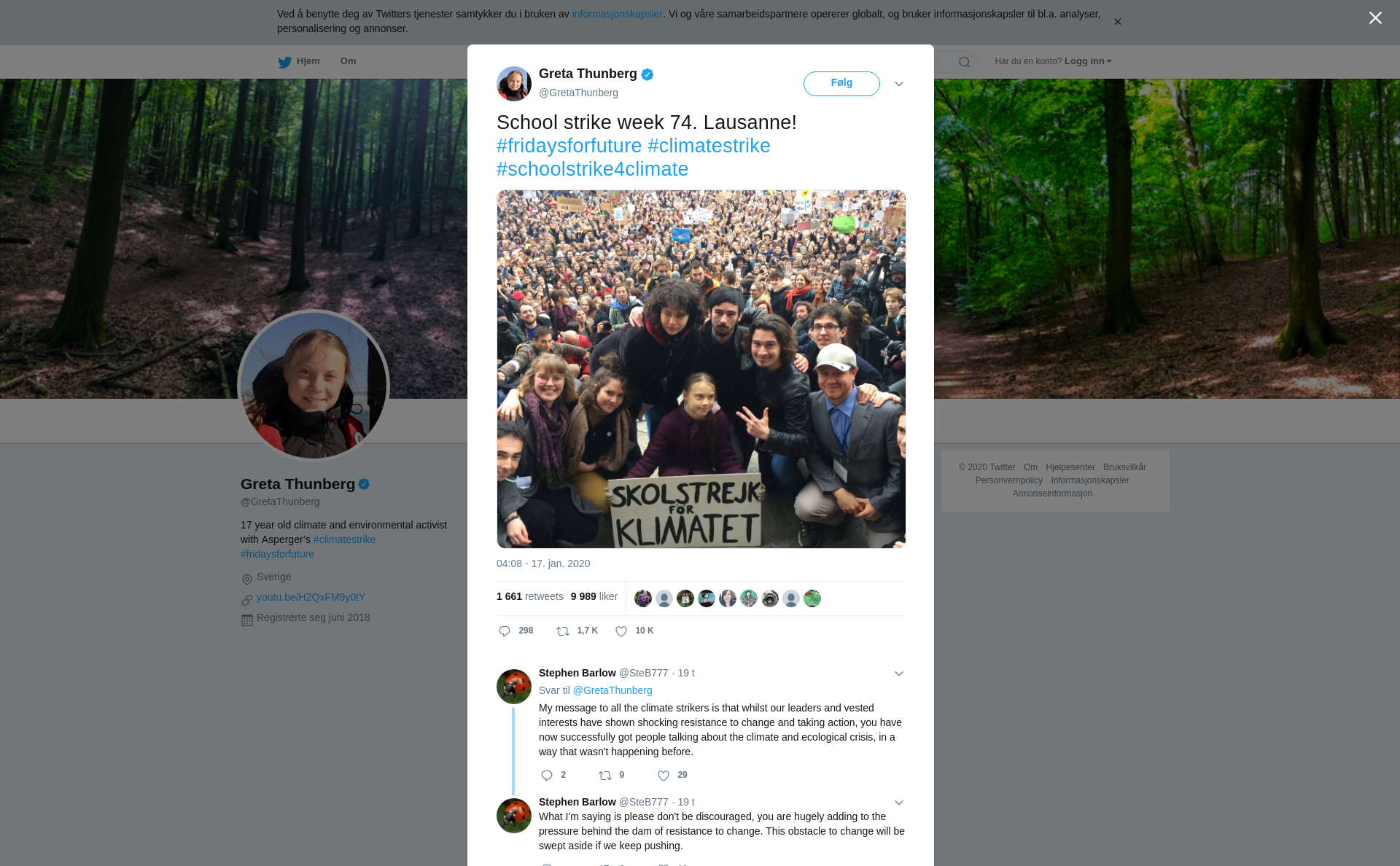RT @GretaThunberg: School strike week 74. Lausanne! #fridaysforfuture #climatestrike #schoolstrike4climate https://t.co/SzHap1M1lT