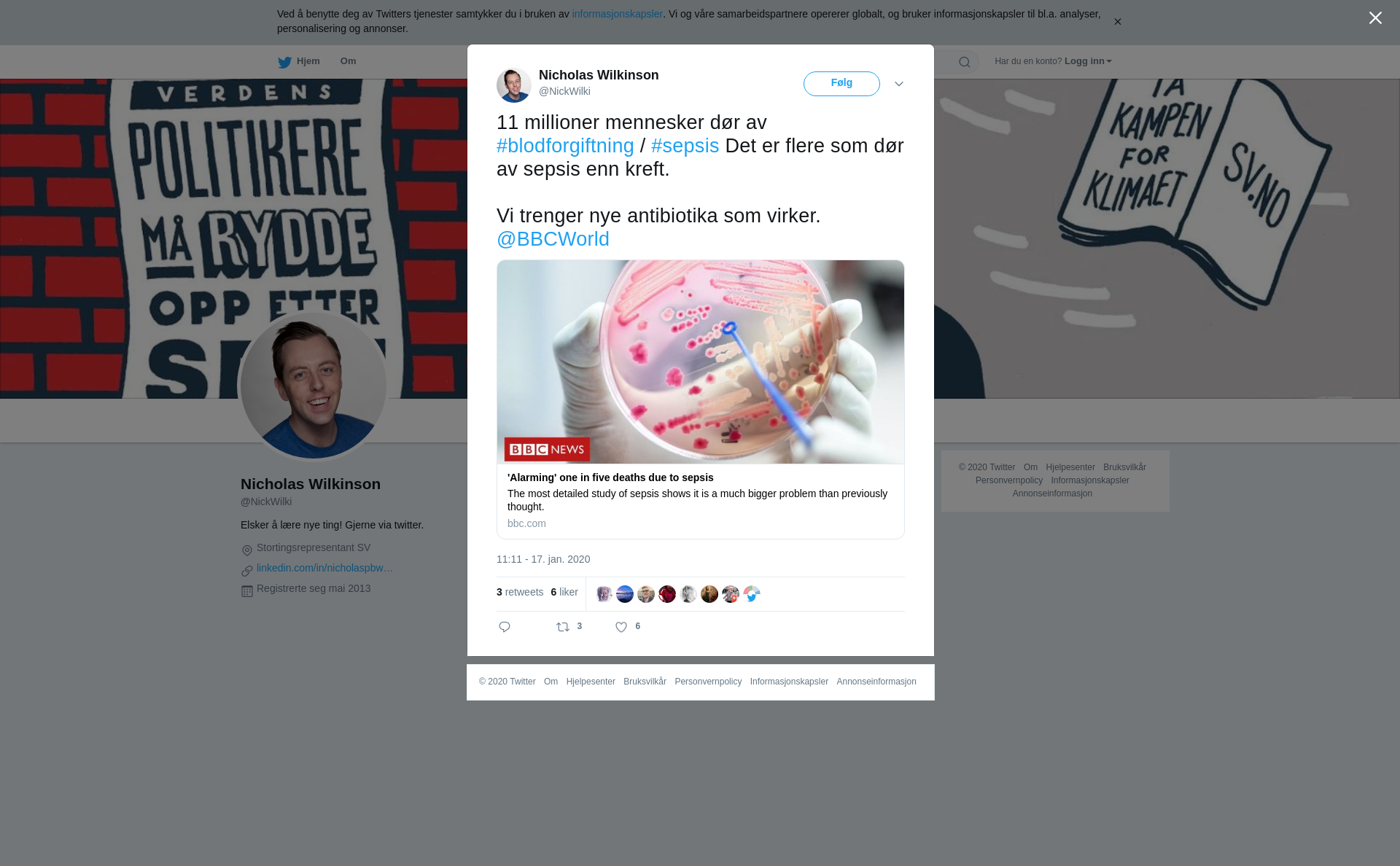 11 millioner mennesker dør av #blodforgiftning / #sepsis Det er flere som dør av sepsis enn kreft. Vi trenger nye antibiotika som virker. @BBCWorld https://t.co/TGMPk1U2Es
