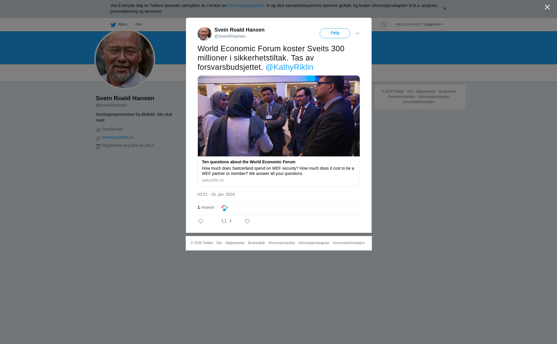World Economic Forum koster Sveits 300 millioner i sikkerhetstiltak. Tas av forsvarsbudsjettet. @KathyRiklin https://t.co/HGyuuphWlI