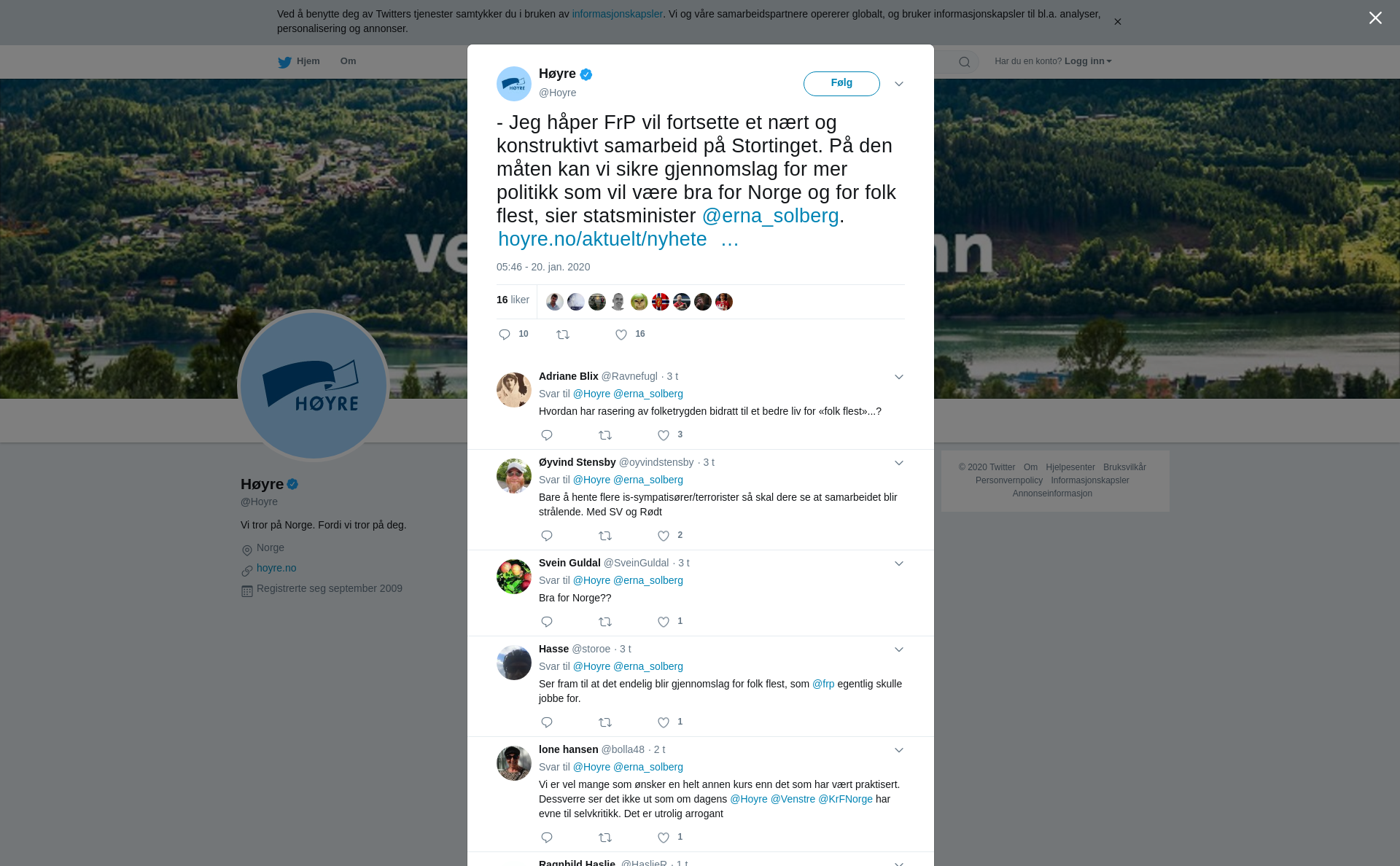 - Jeg håper FrP vil fortsette et nært og konstruktivt samarbeid på Stortinget. På den måten kan vi sikre gjennomslag for mer politikk som vil være bra for Norge og for folk flest, sier statsminister @erna_solberg. https://t.co/4gqhFRNusz