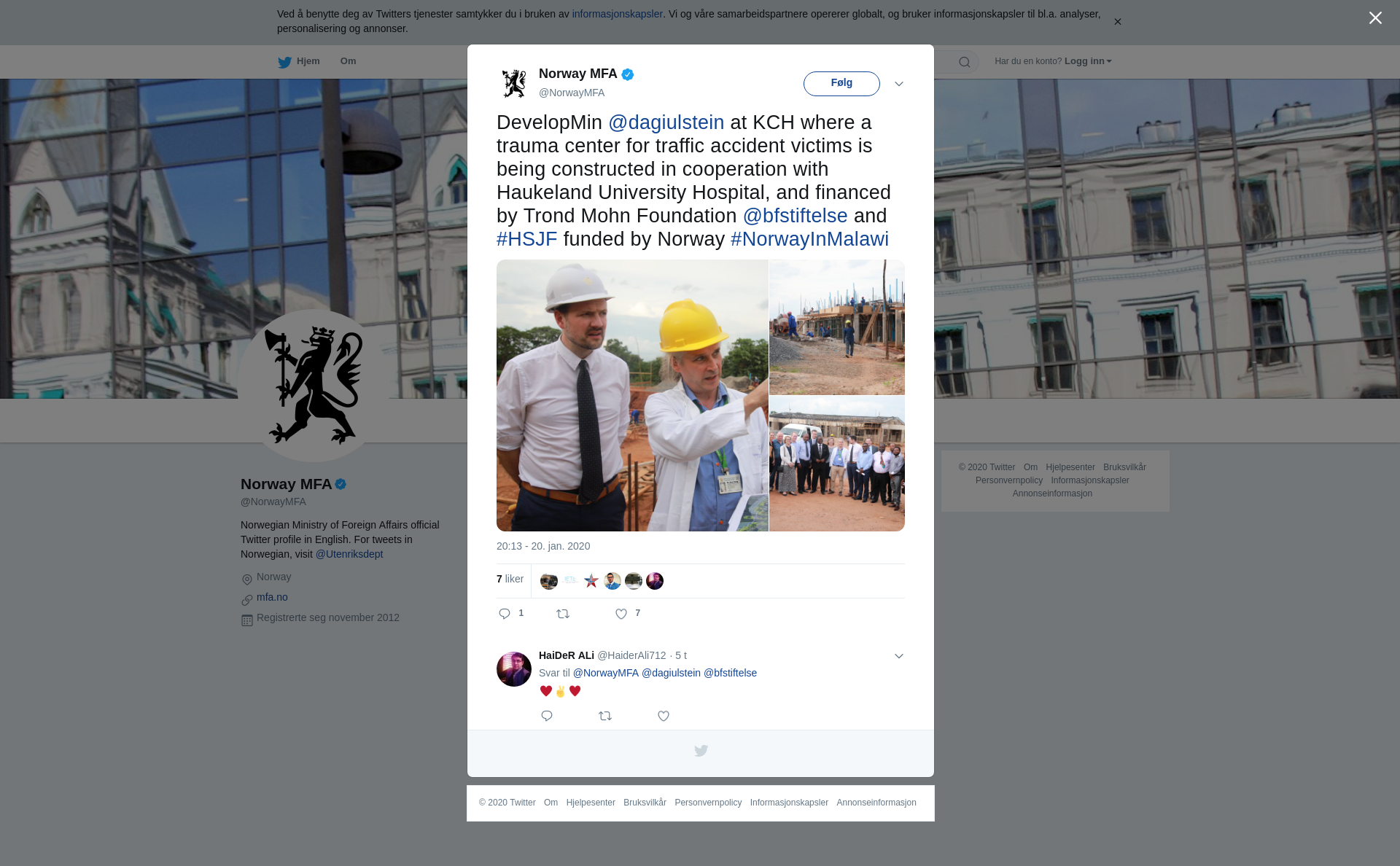 DevelopMin @dagiulstein at KCH where a trauma center for traffic accident victims is being constructed in cooperation with Haukeland University Hospital, and financed by Trond Mohn Foundation @bfstiftelse and #HSJF funded by Norway #NorwayInMalawi https://t.co/Um2balz92y