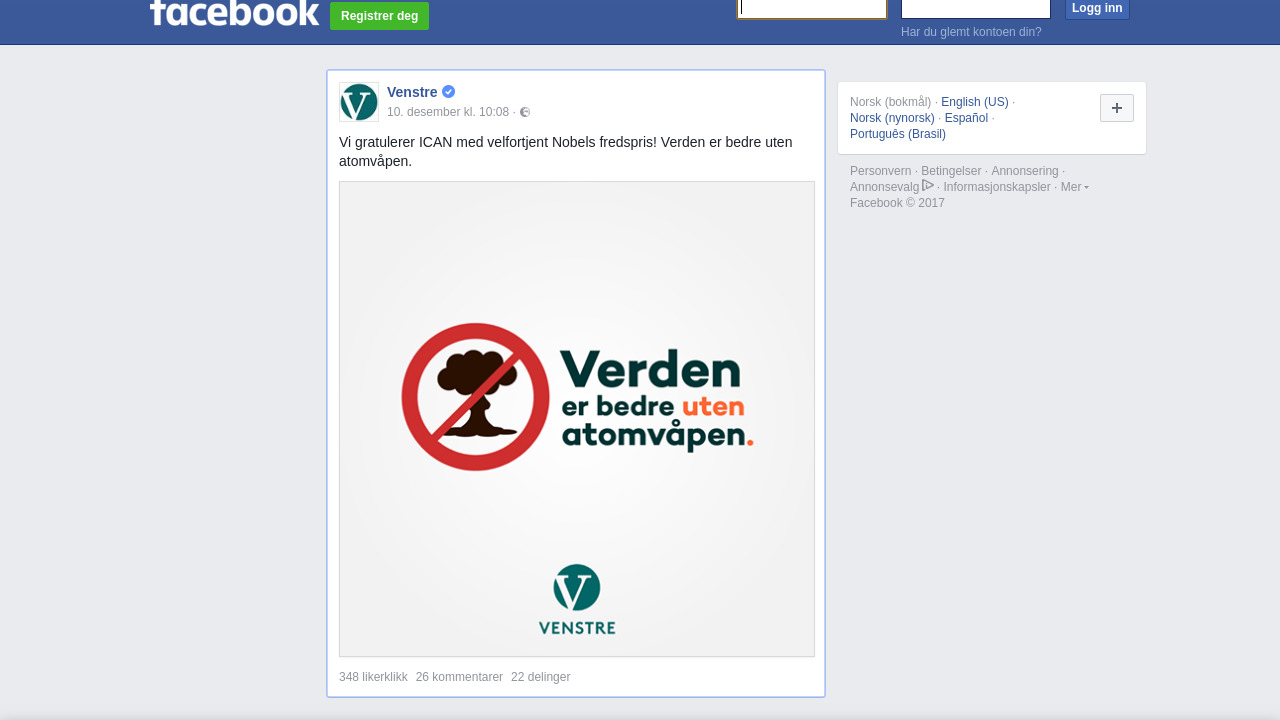 venstre.no på Facebook