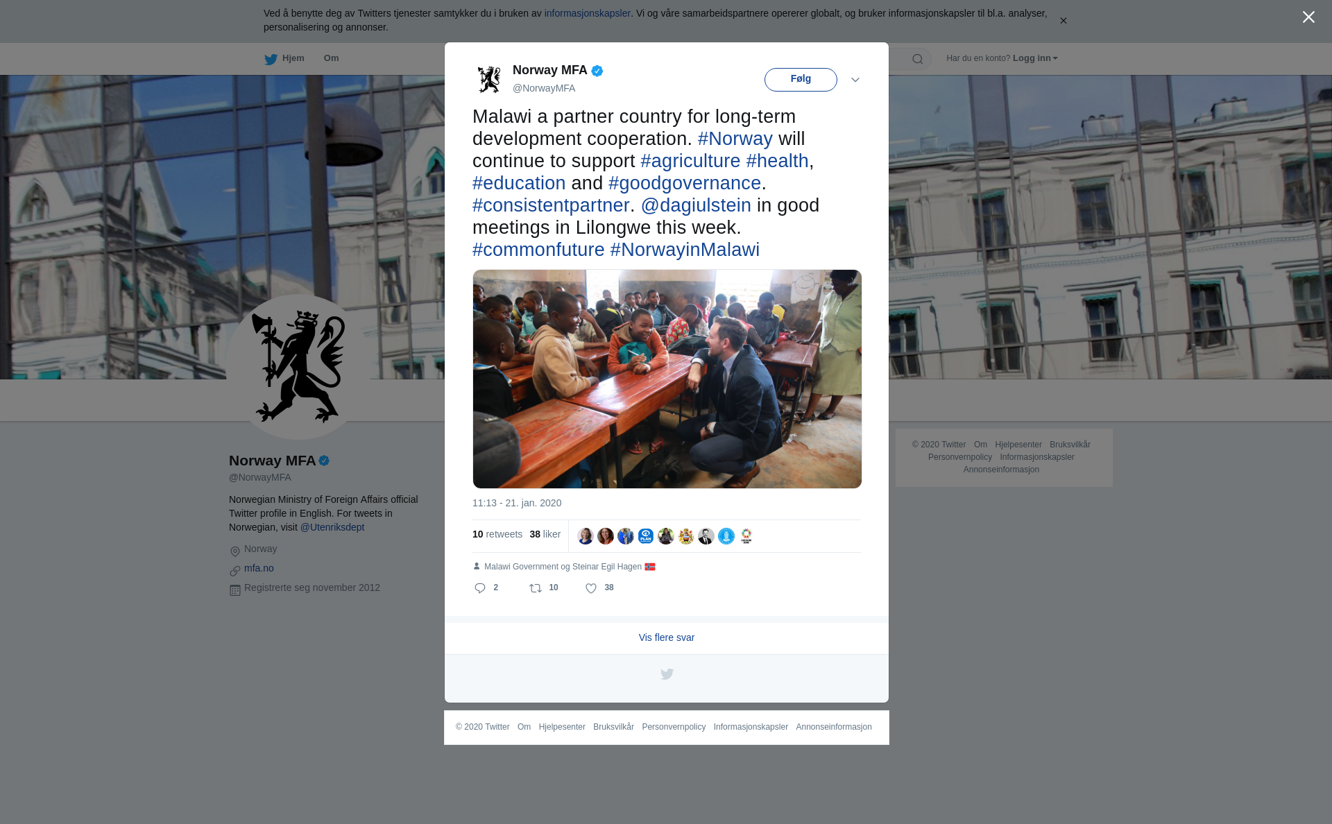 RT @NorwayMFA: Malawi a partner country for long-term development cooperation. #Norway will continue to support #agriculture #health, #education and #goodgovernance. #consistentpartner. @dagiulstein in good meetings in Lilongwe this week. #commonfuture #NorwayinMalawi https://t.co/KbNn7FQjdU