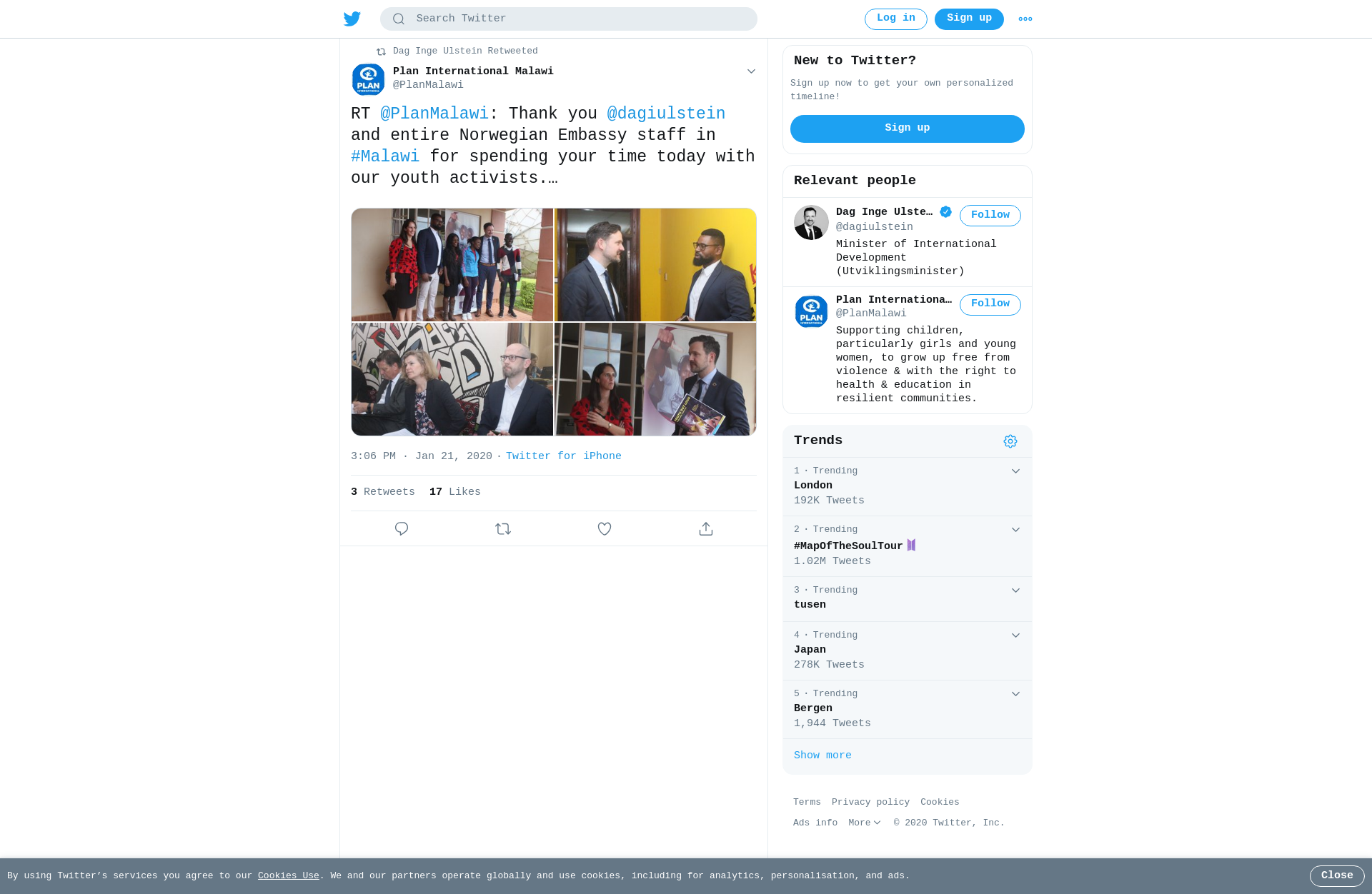 RT @PlanMalawi: Thank you @dagiulstein and entire Norwegian Embassy staff in #Malawi for spending your time today with our youth activists. Plan Malawi and @timveniradio appreciate your support. We are looking forward to ending more #Childmarriages. @PlanNorge @SteinarEHagen @noellamemories https://t.co/KrACgnwKu7