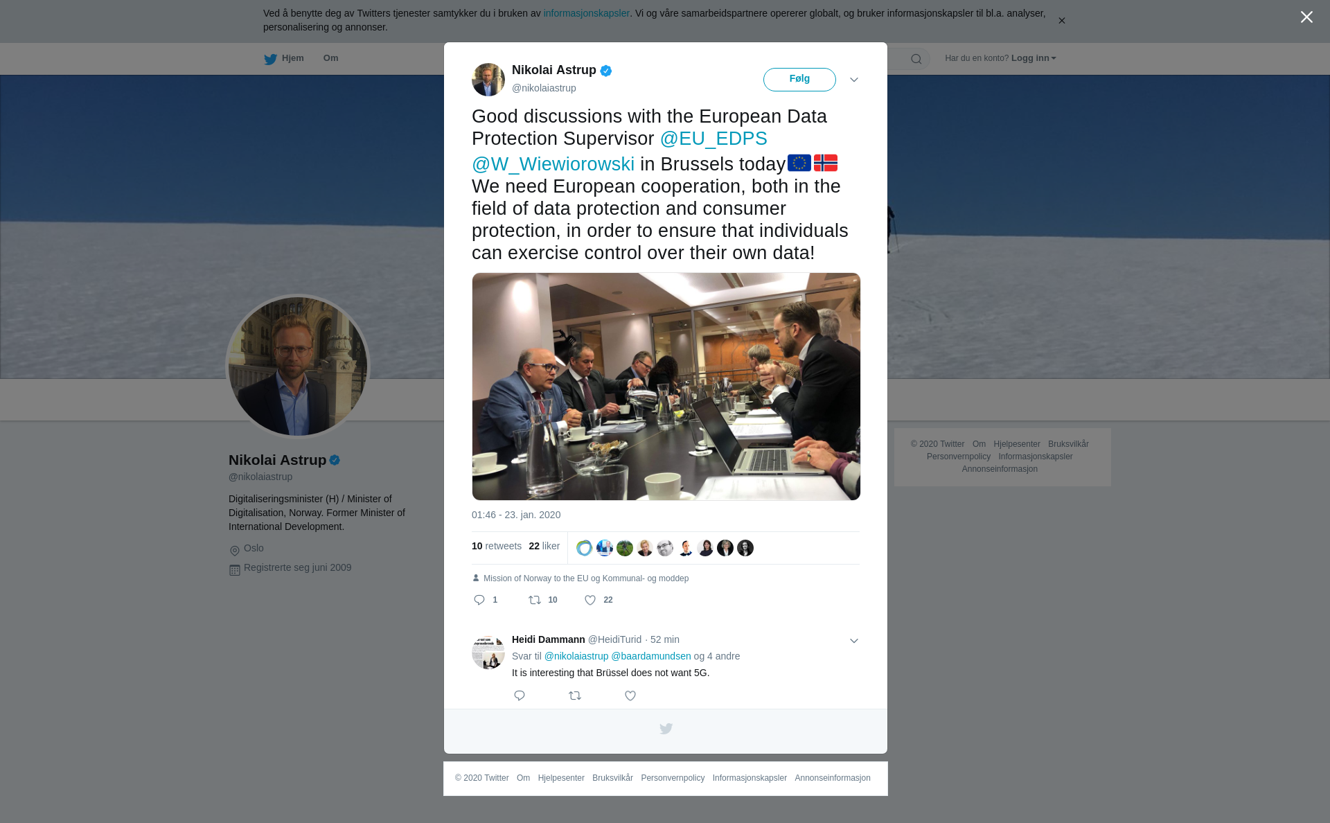 Good discussions with the European Data Protection Supervisor @EU_EDPS @W_Wiewiorowski in Brussels today🇪🇺🇳🇴 We need European cooperation, both in the field of data protection and consumer protection, in order to ensure that individuals can exercise control over their own data! https://t.co/sGgeFdZGTT