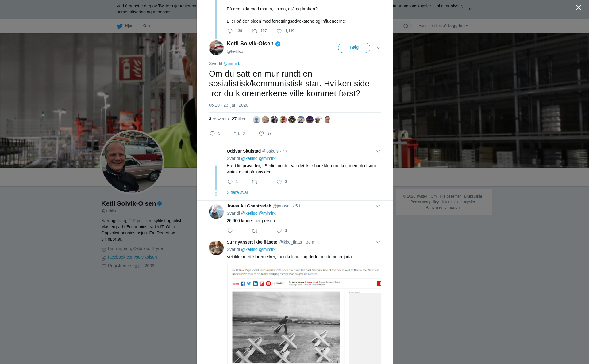 @mimirk Om du satt en mur rundt en sosialistisk/kommunistisk stat. Hvilken side tror du kloremerkene ville kommet først?