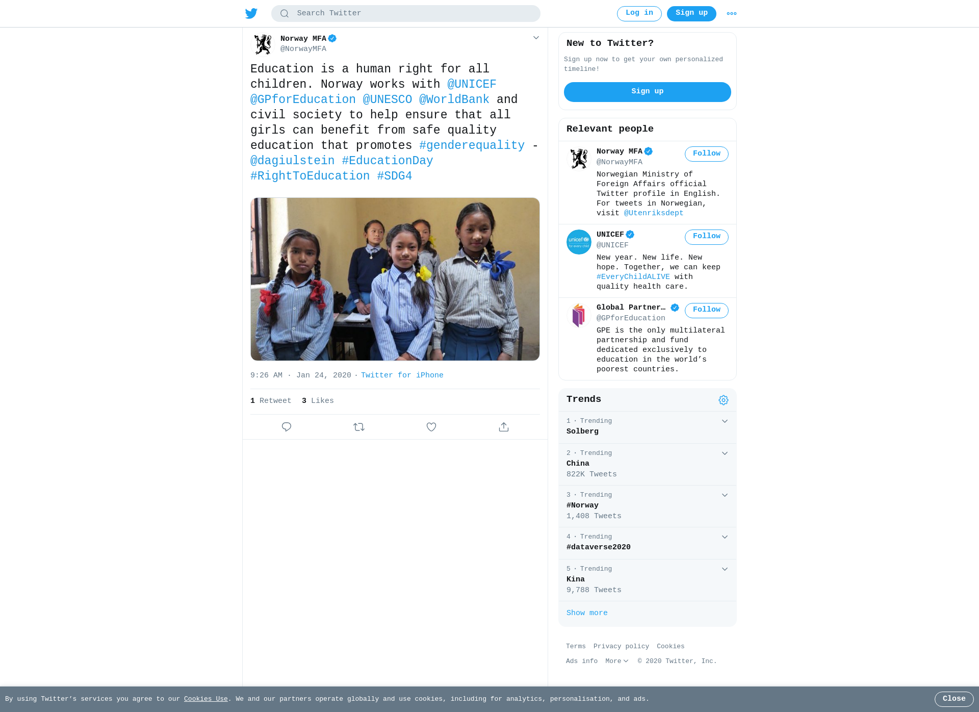 Education is a human right for all children. Norway works with @UNICEF @GPforEducation @UNESCO @WorldBank and civil society to help ensure that all girls can benefit from safe quality education that promotes #genderequality - @dagiulstein #EducationDay #RightToEducation #SDG4 https://t.co/Q4eAdaveY8