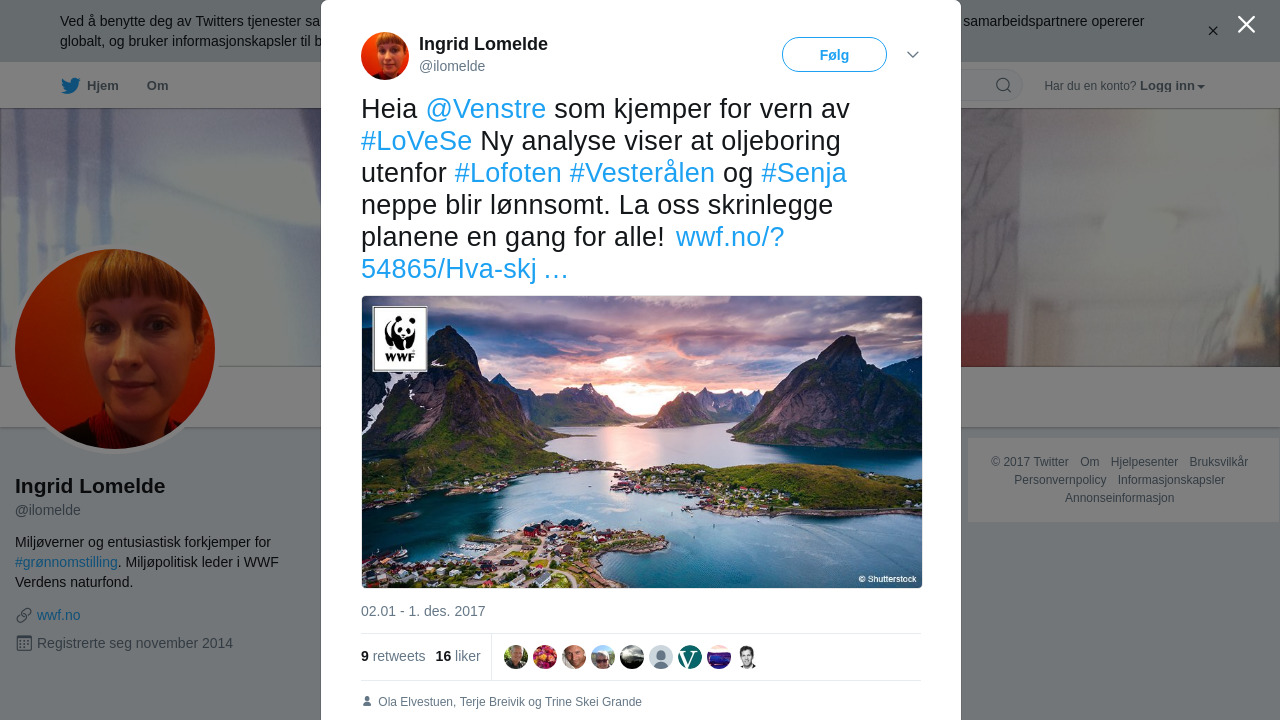 RT @ilomelde: Heia @Venstre som kjemper for vern av #LoVeSe Ny analyse viser at oljeboring utenfor #Lofoten #Vesterålen og #Senja… https://t.co/WTrbEi8yb3