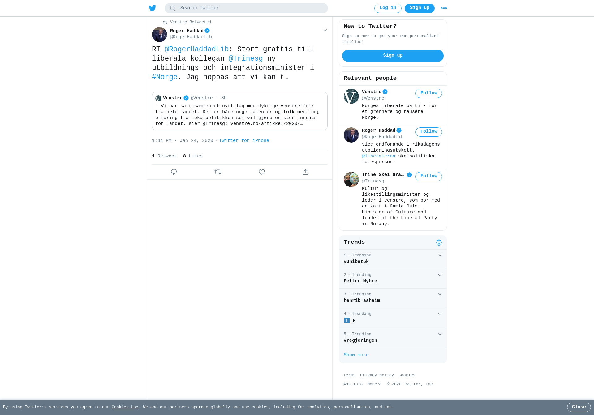 RT @RogerHaddadLib: Stort grattis till liberala kollegan @Trinesg ny utbildnings-och integrationsminister i #Norge. Jag hoppas att vi kan träffas och diskutera utbildningspolitik snart! #svpol #utbpol