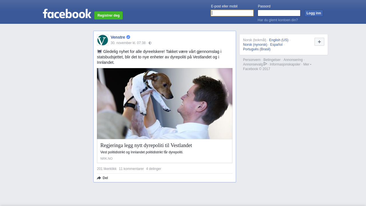 venstre.no på Facebook