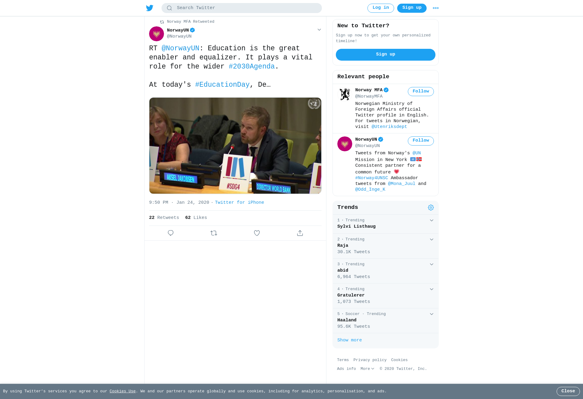 RT @NorwayUN: Education is the great enabler and equalizer. It plays a vital role for the wider #2030Agenda. At today's #EducationDay, De…