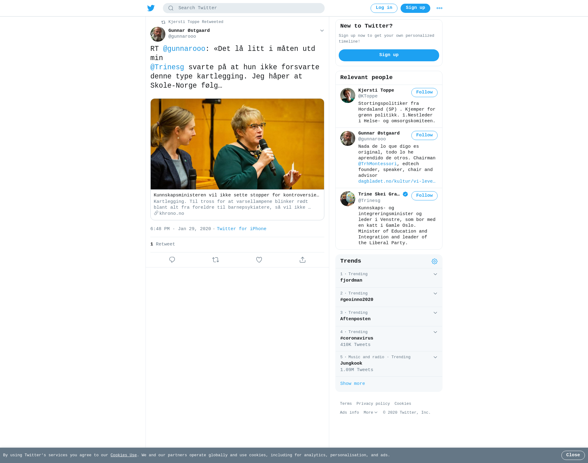 RT @gunnarooo: «Det lå litt i måten utd min @Trinesg svarte på at hun ikke forsvarte denne type kartlegging. Jeg håper at Skole-Norge følg…