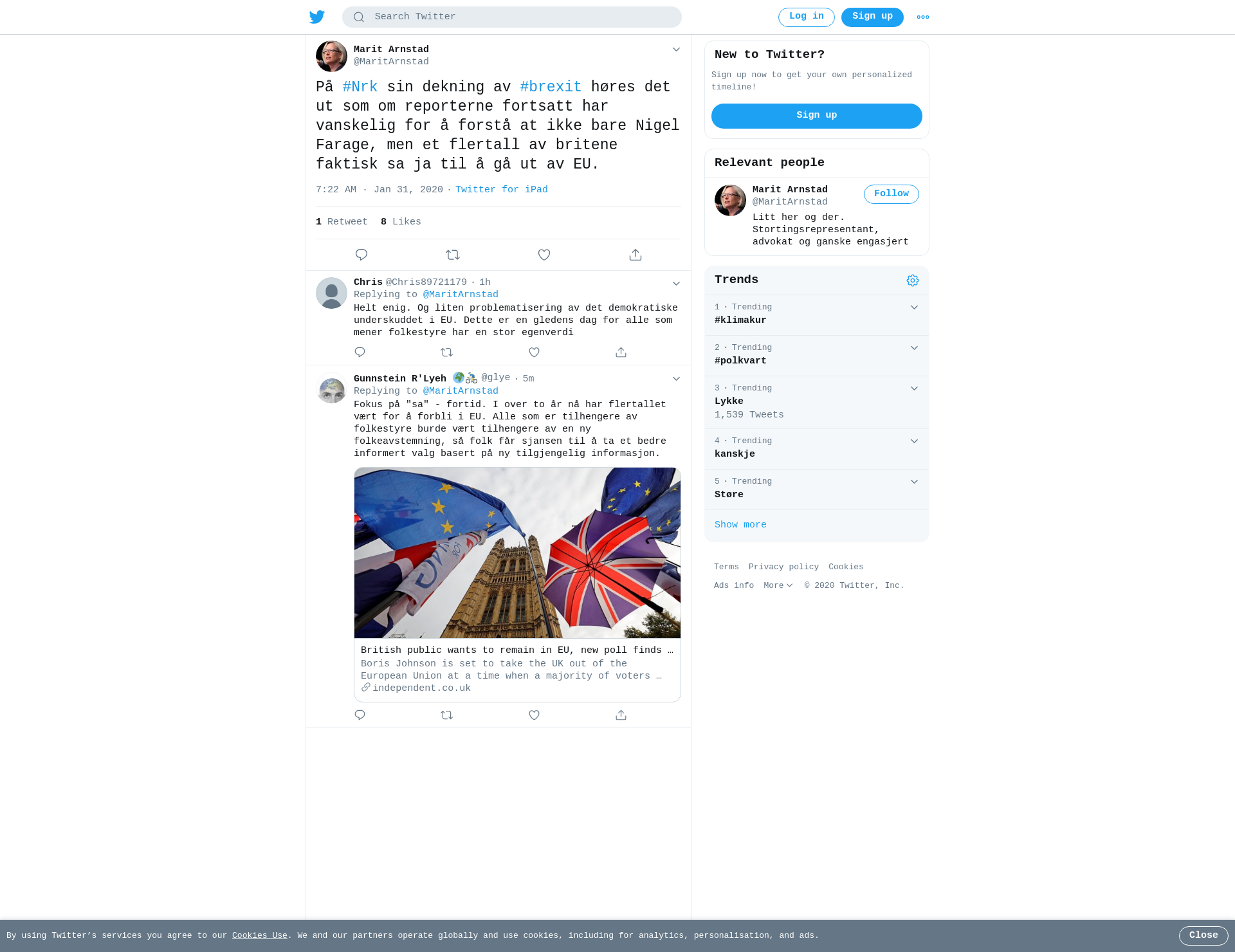 På #Nrk sin dekning av #brexit høres det ut som om reporterne fortsatt har vanskelig for å forstå at ikke bare Nigel Farage, men et flertall av britene faktisk sa ja til å gå ut av EU.