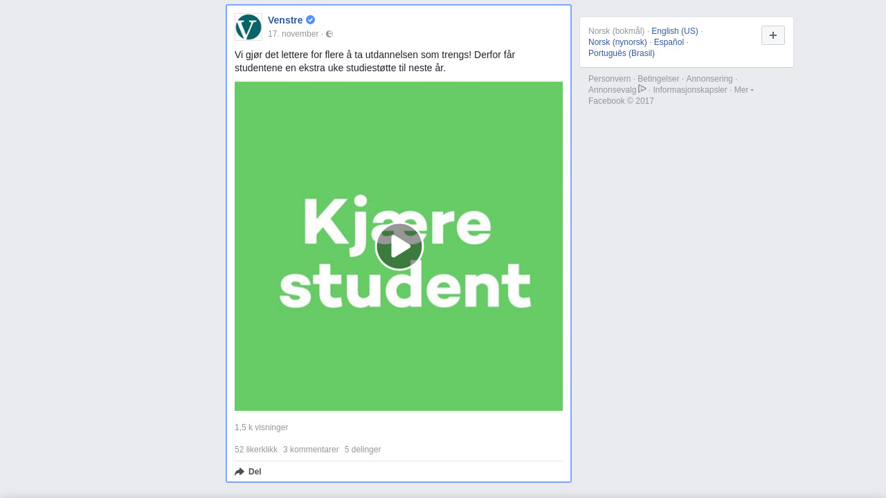 venstre.no på Facebook