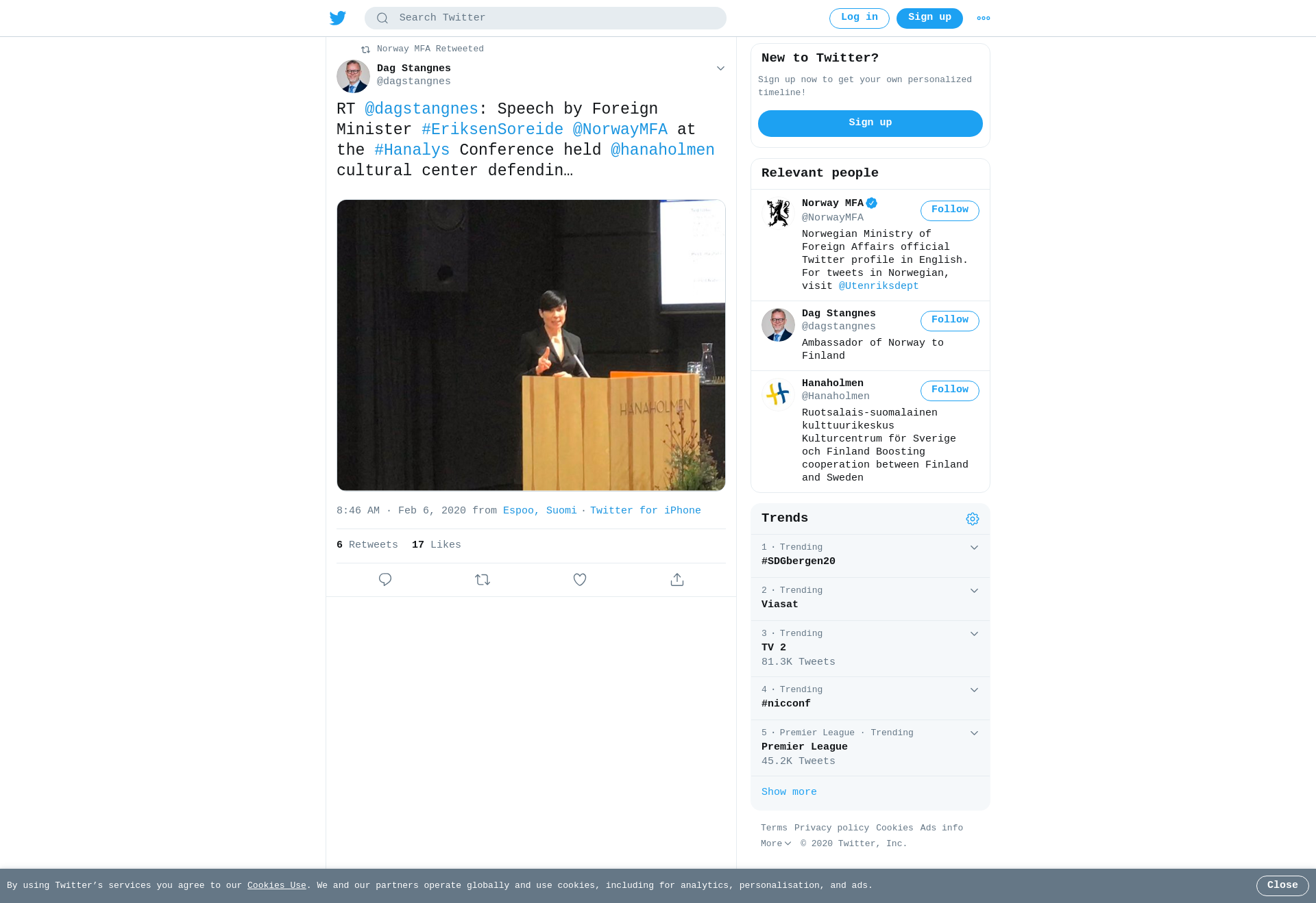 RT @dagstangnes: Speech by Foreign Minister #EriksenSoreide @NorwayMFA at the #Hanalys Conference held @hanaholmen cultural center defending strong #MultilateralCooperation, #RuleOfLaw and sexual & reproductive health & rights. https://t.co/lJJJYiIV2P