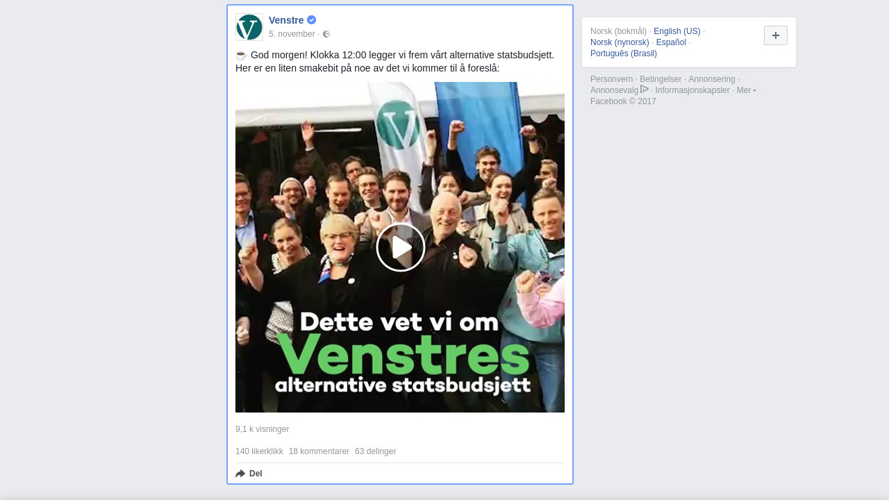 venstre.no på Facebook