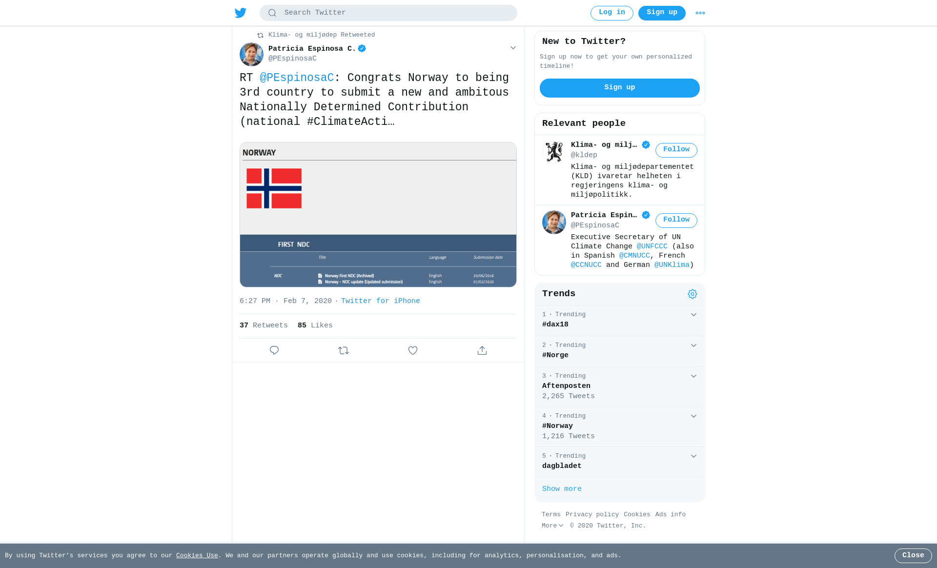 RT @PEspinosaC: Congrats Norway to being 3rd country to submit a new and ambitous Nationally Determined Contribution (national #ClimateAction plan under the #ParisAgreement) for 2020 > https://t.co/gIdqIqxzSB New target is to reduce emissions by at least 50% by 2030 compared to 1990 levels #NDCs https://t.co/YswhlkknYR