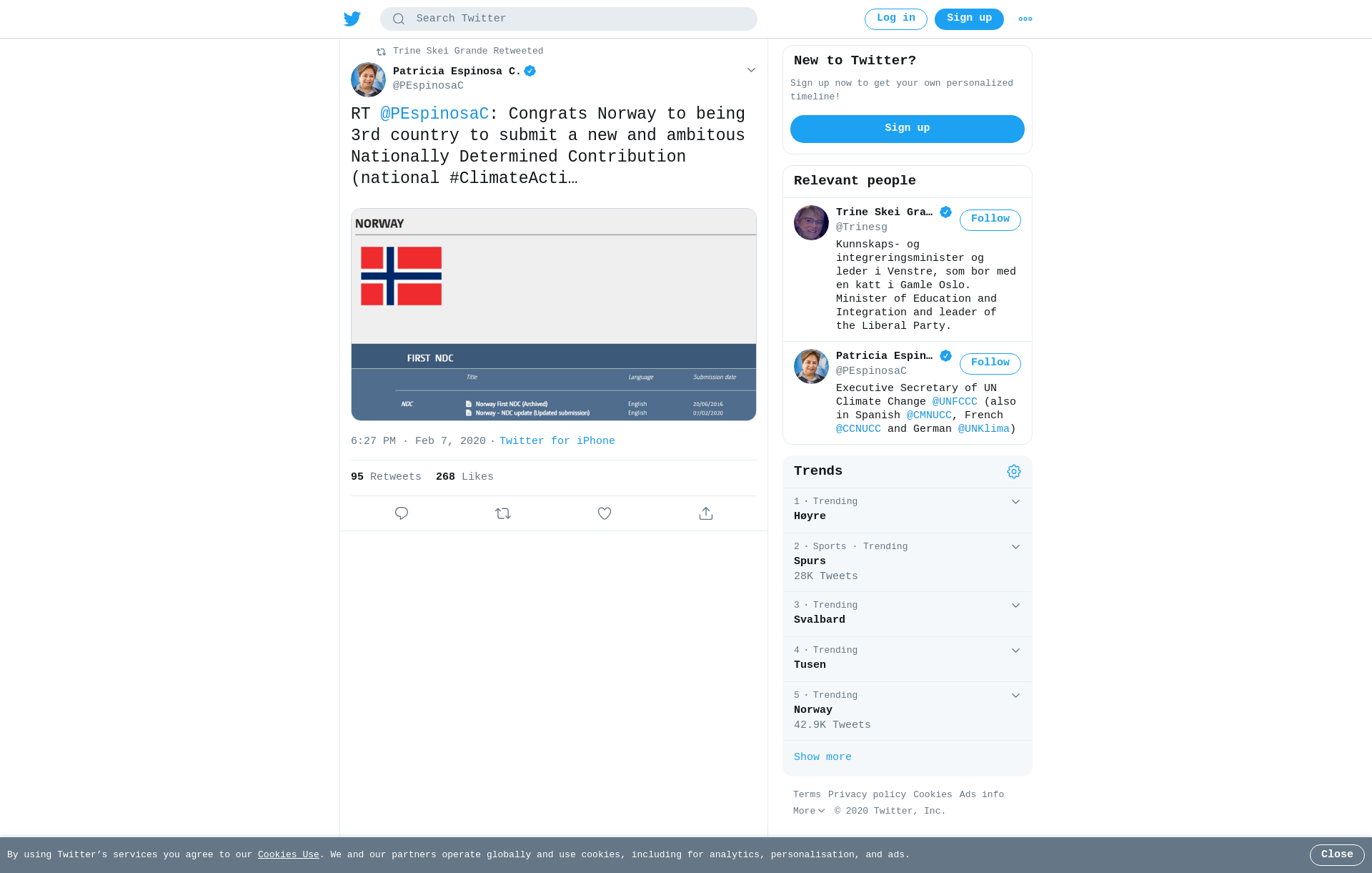 RT @PEspinosaC: Congrats Norway to being 3rd country to submit a new and ambitous Nationally Determined Contribution (national #ClimateAction plan under the #ParisAgreement) for 2020 > https://t.co/gIdqIqxzSB New target is to reduce emissions by at least 50% by 2030 compared to 1990 levels #NDCs https://t.co/YswhlkknYR