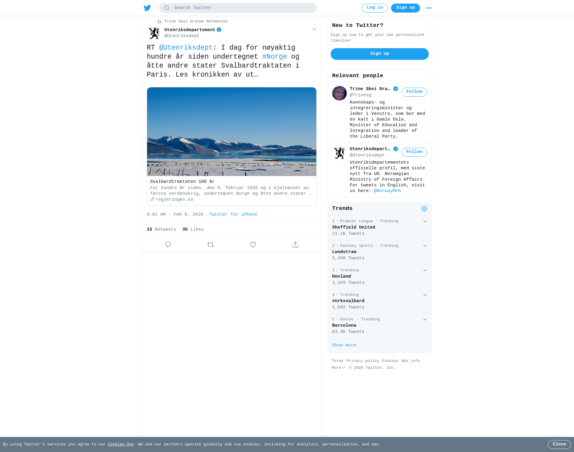 RT @Utenriksdept: I dag for nøyaktig hundre år siden undertegnet #Norge og åtte andre stater Svalbardtraktaten i Paris. Les kronikken av utenriksminister Ine #EriksenSoreide og justis- og beredskapsminister #MonicaMæland om #Svalbard på hundreårsdagen https://t.co/D7L9V5mqu2