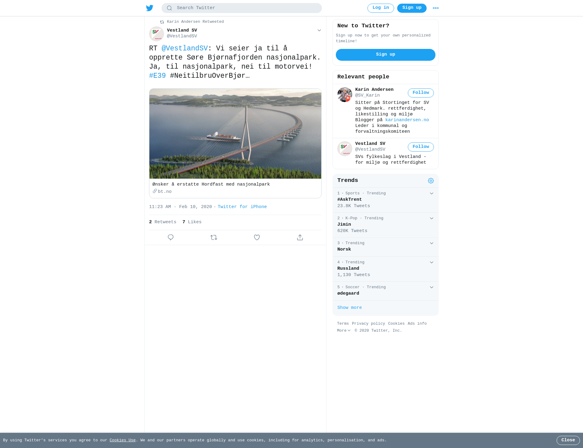 RT @VestlandSV: Vi seier ja til å opprette Søre Bjørnafjorden nasjonalpark. Ja, til nasjonalpark, nei til motorvei! #E39 #NeitilbruOverBjør…