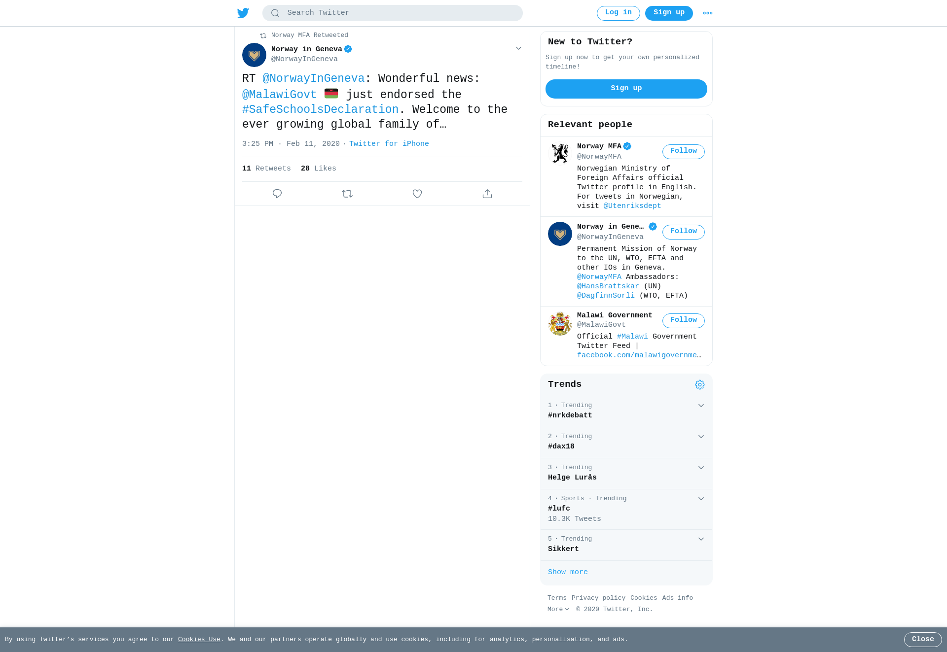 RT @NorwayInGeneva: Wonderful news: @MalawiGovt 🇲🇼 just endorsed the #SafeSchoolsDeclaration. Welcome to the ever growing global family of 102 states committed to #ProtectEducation! @NorwayMFA @NorwayUN @NorwayAU @GCPEAtweets