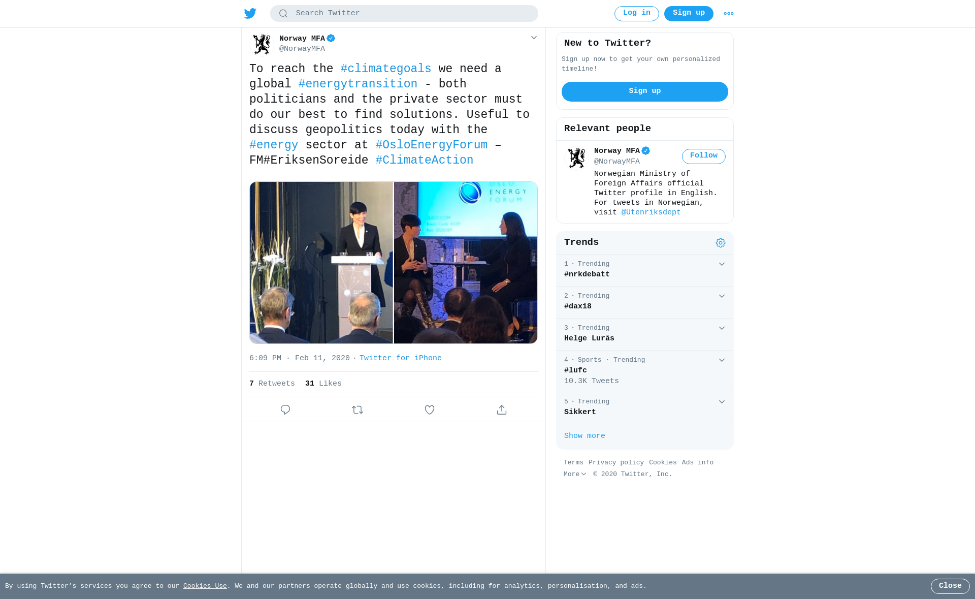 To reach the #climategoals we need a global #energytransition - both politicians and the private sector must do our best to find solutions. Useful to discuss geopolitics today with the #energy sector at #OsloEnergyForum – FM#EriksenSoreide #ClimateAction https://t.co/GSXgXVh0DF