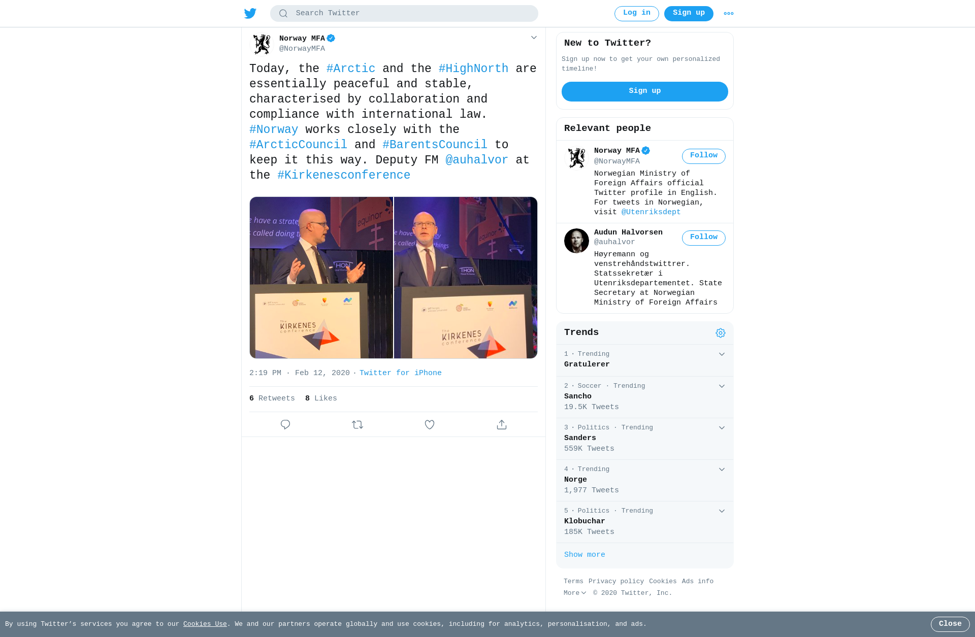 Today, the #Arctic and the #HighNorth are essentially peaceful and stable, characterised by collaboration and compliance with international law. #Norway works closely with the #ArcticCouncil and #BarentsCouncil to keep it this way. Deputy FM @auhalvor at the #Kirkenesconference https://t.co/alcJa1kwUn