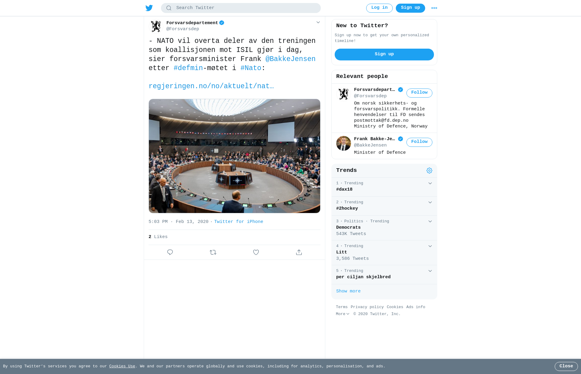 - NATO vil overta deler av den treningen som koallisjonen mot ISIL gjør i dag, sier forsvarsminister Frank @BakkeJensen etter #defmin-møtet i #Nato: