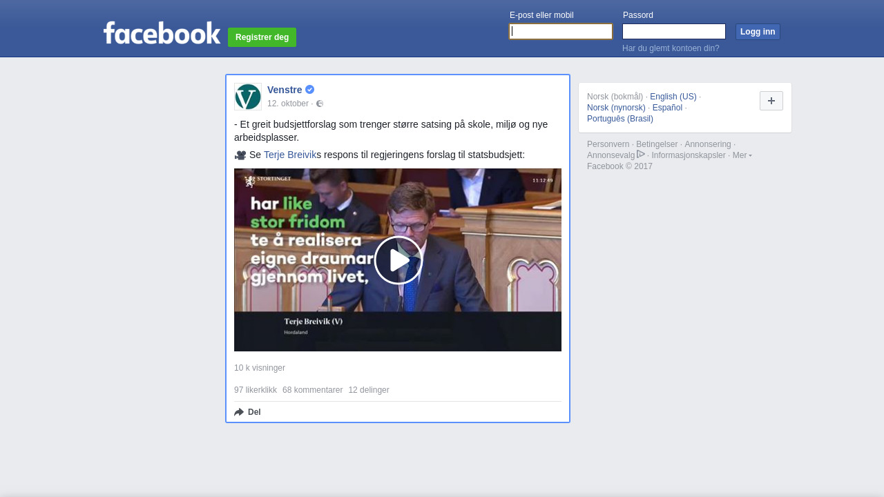 - Et greit budsjettforslag som trenger større satsing på skole, miljø og nye arbeidsplasser. 🎥 Se Terje Breiviks respons til regjeringens forslag til statsbudsjett: