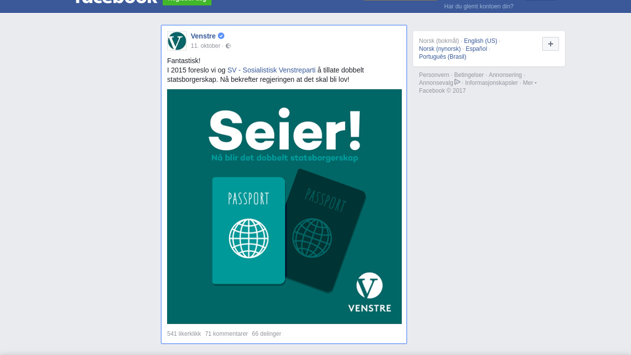 Fantastisk! I 2015 foreslo vi og SV - Sosialistisk Venstreparti å tillate dobbelt statsborgerskap. Nå bekrefter regjeringen at det skal bli lov!
