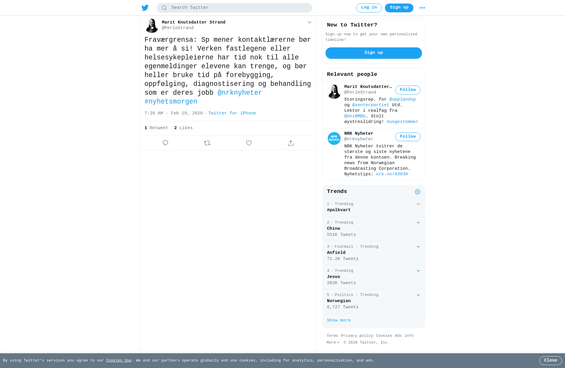 Fraværgrensa: Sp mener kontaktlærerne bør ha mer å si! Verken fastlegene eller helsesykepleierne har tid nok til alle egenmeldinger elevene kan trenge, og bør heller bruke tid på forebygging, oppfølging, diagnostisering og behandling som er deres jobb @nrknyheter #nyhetsmorgen